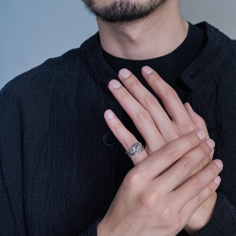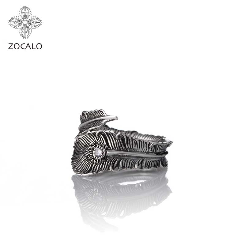 ZOCALO官方旗舰店凤凰の羽系列 女士925银饰品白锆石羽毛活圈戒指