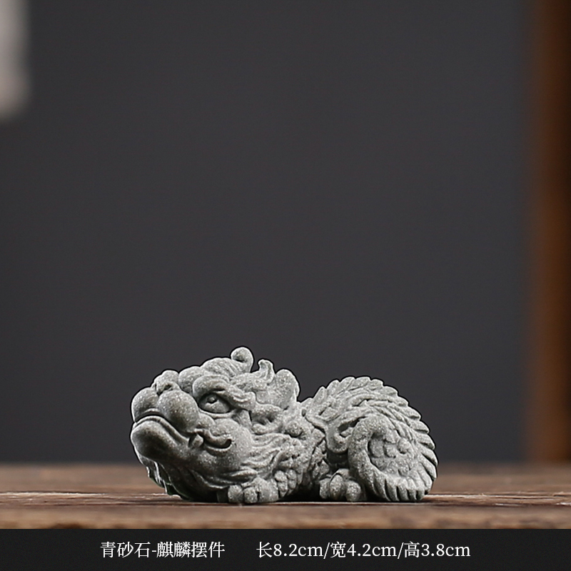 速发青砂石鱼缸造景新意式瑞兽麒麟家居创中国潮精装茶宠品饰品摆