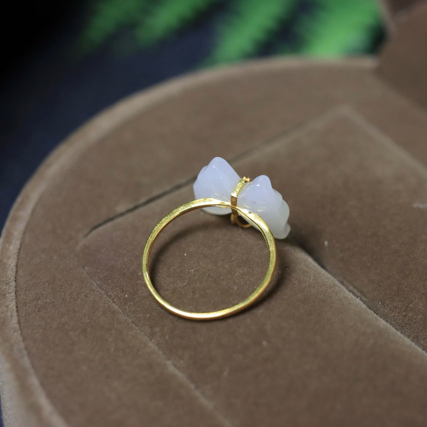 天然和田玉白玉蝴蝶戒指18K金镶白玉蝴蝶戒指新中式国风礼物福蝶