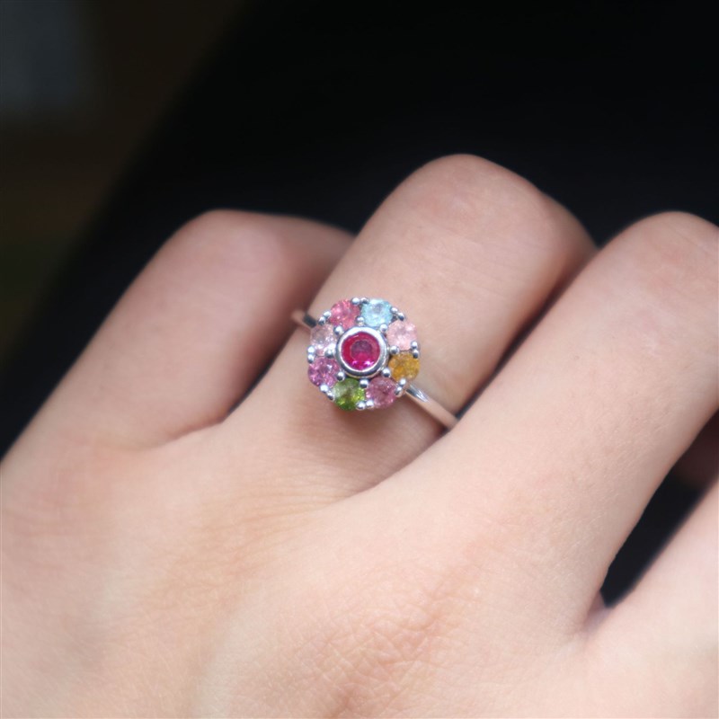 转转碧玺戒指 S925银镶嵌可旋转戒指碧玺女款时尚可转动