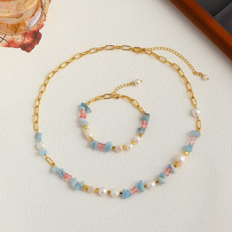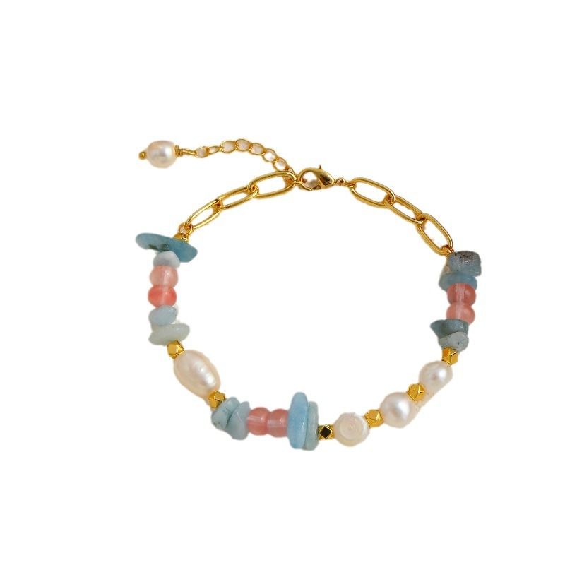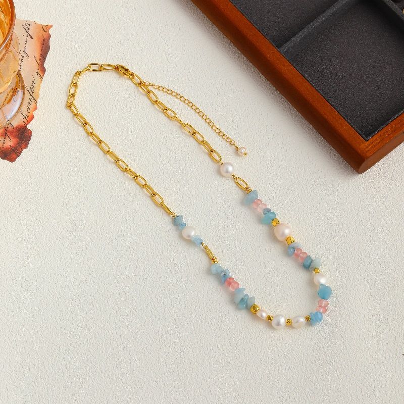 【星辰屿海】蓝色清凉感海蓝宝天然石淡水天然珍珠碎石手链项链