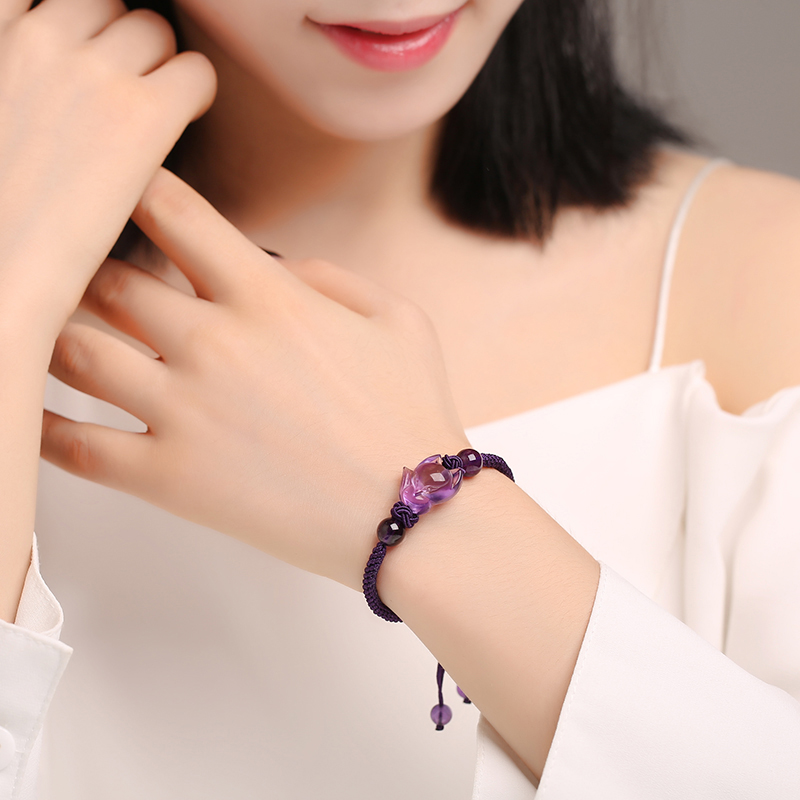 天然紫水晶手链女上班族助运学生上岸礼物正品乌拉圭紫晶狐狸手串
