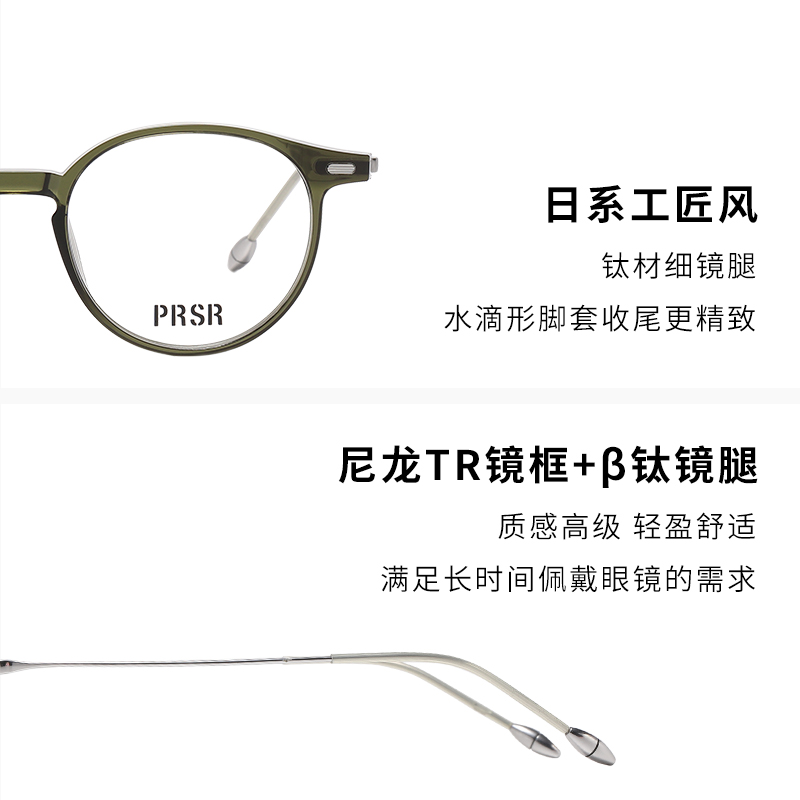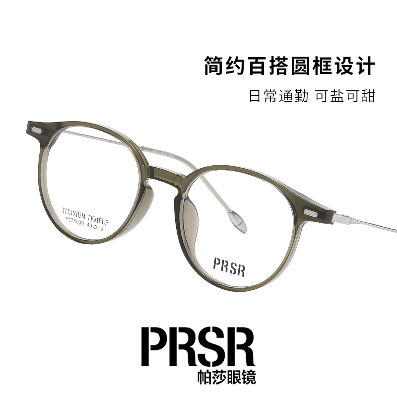 帕莎杨超越纯钛眼镜框架女素颜黑框显脸小橄榄绿日系圆框可配近视