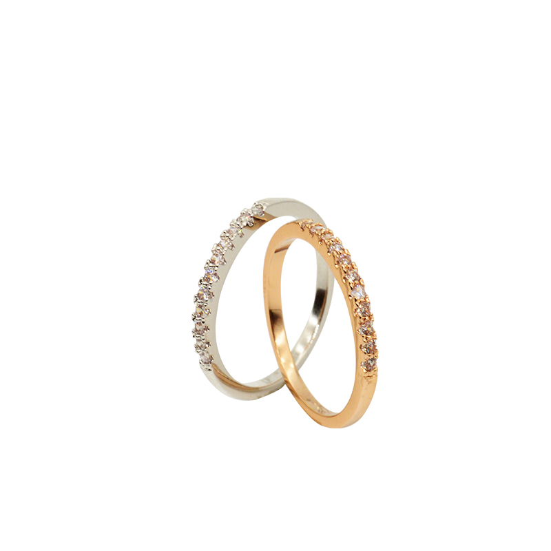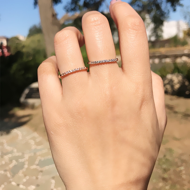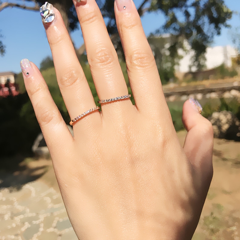 日韩玫瑰金微群镶单排钻碎钻简约个性潮女款细钻戒指尾戒关节饰品
