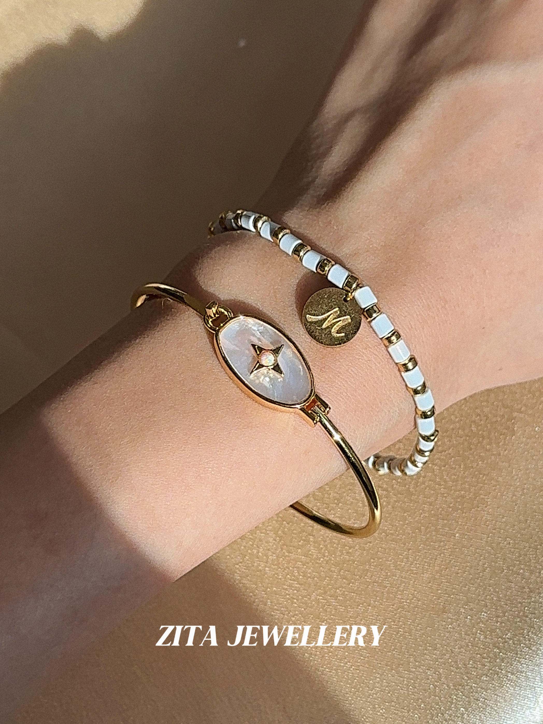 ZZZITA 日月星芒~美式小众十字星芒闪钻金色手镯设计感手环送礼