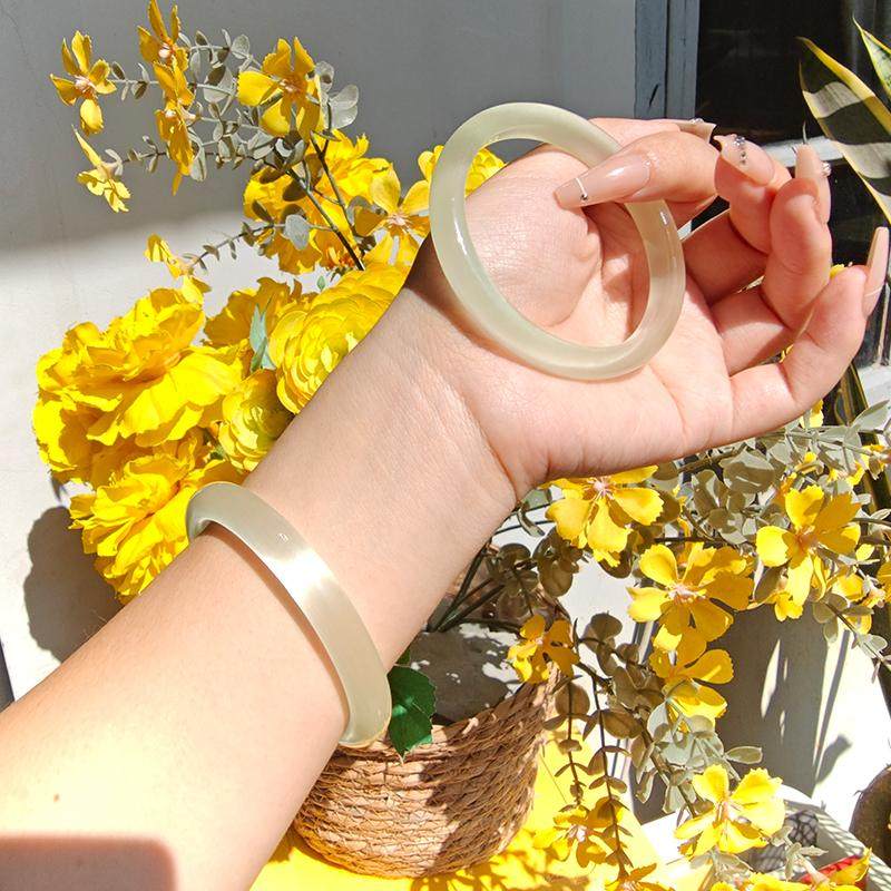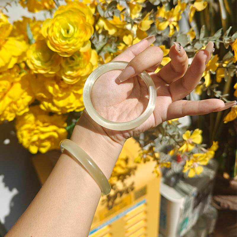 【私人定制】白月光柠檬黄色手镯女玉髓高冰透年轻款猫眼贵妃玉镯