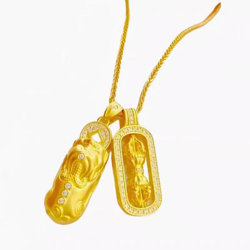 金包银项链貔貅金刚杵吊坠女黄金色韦雪同款降魔杵转运珠坠送女友