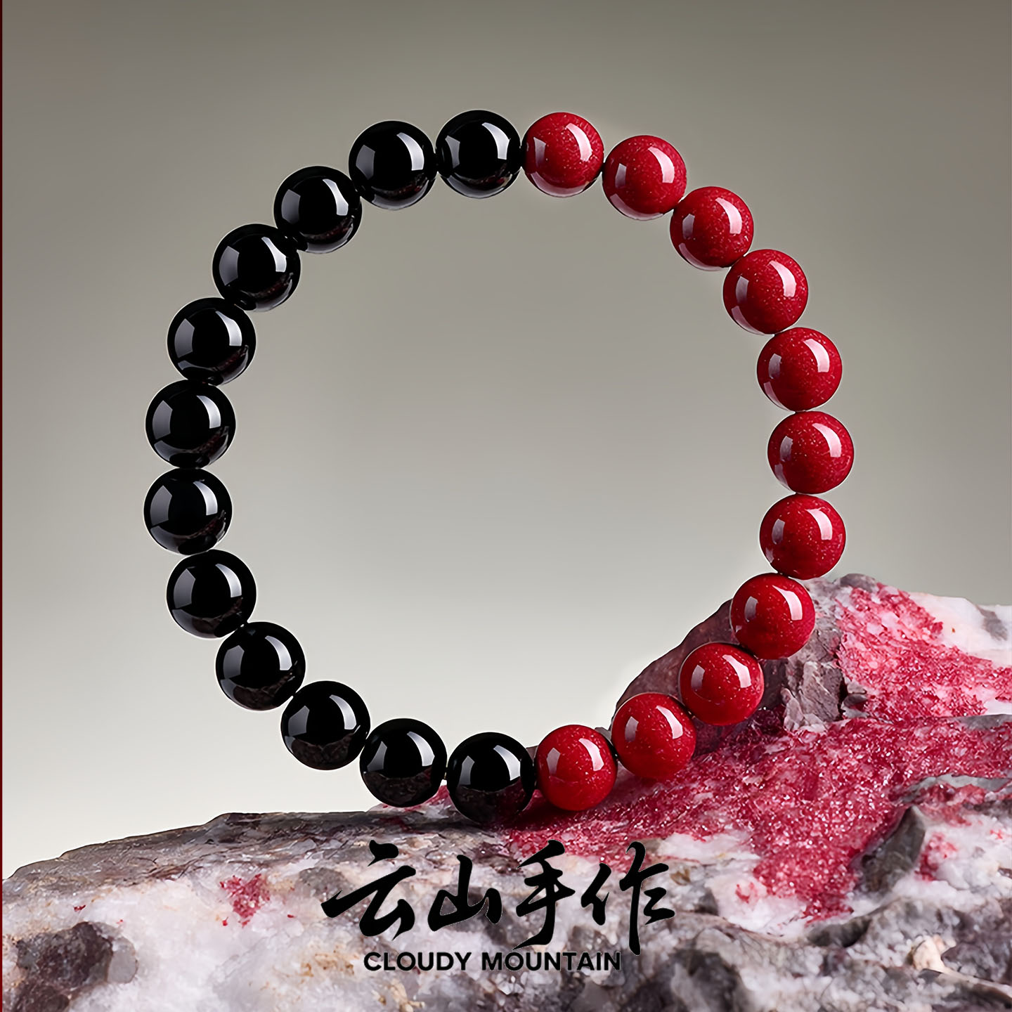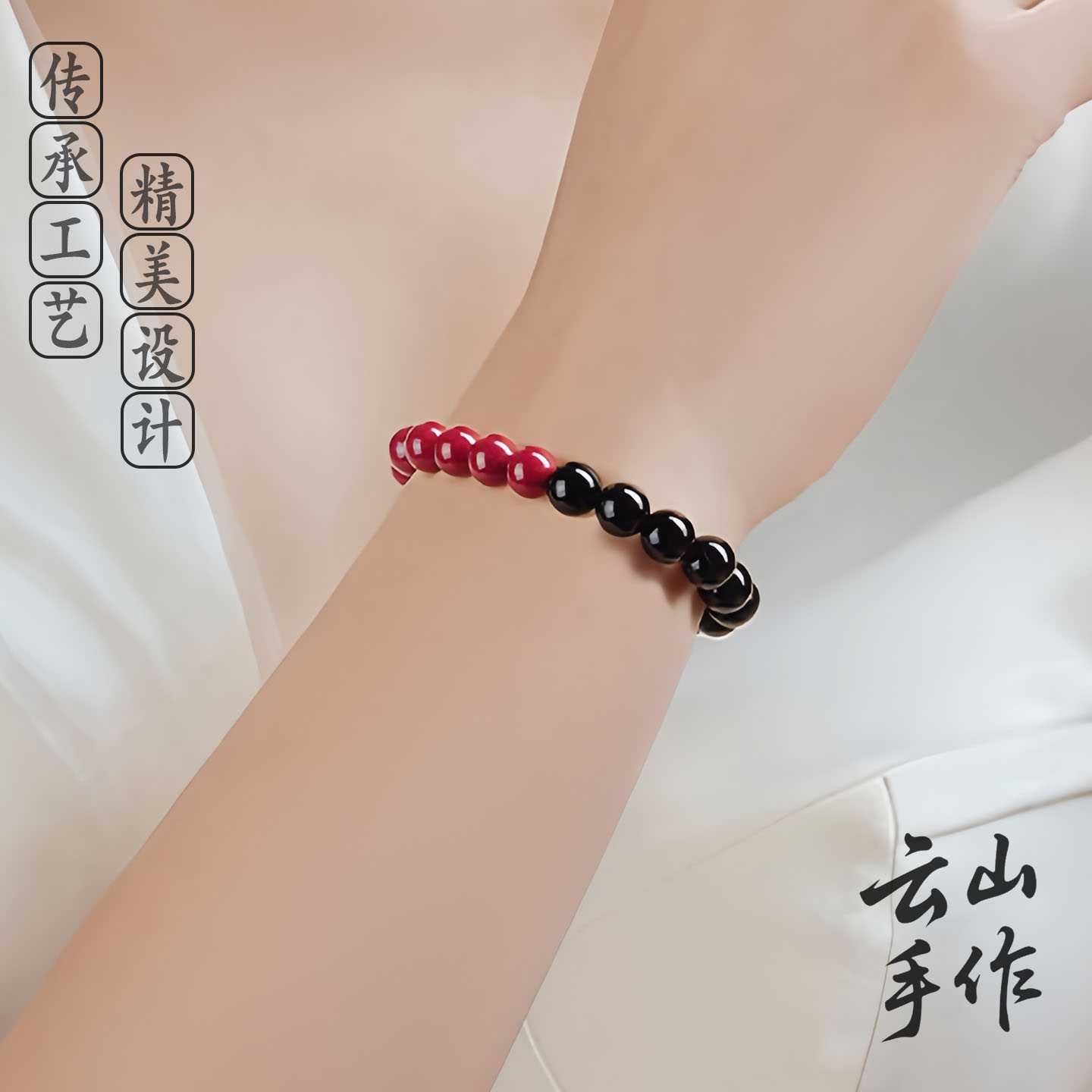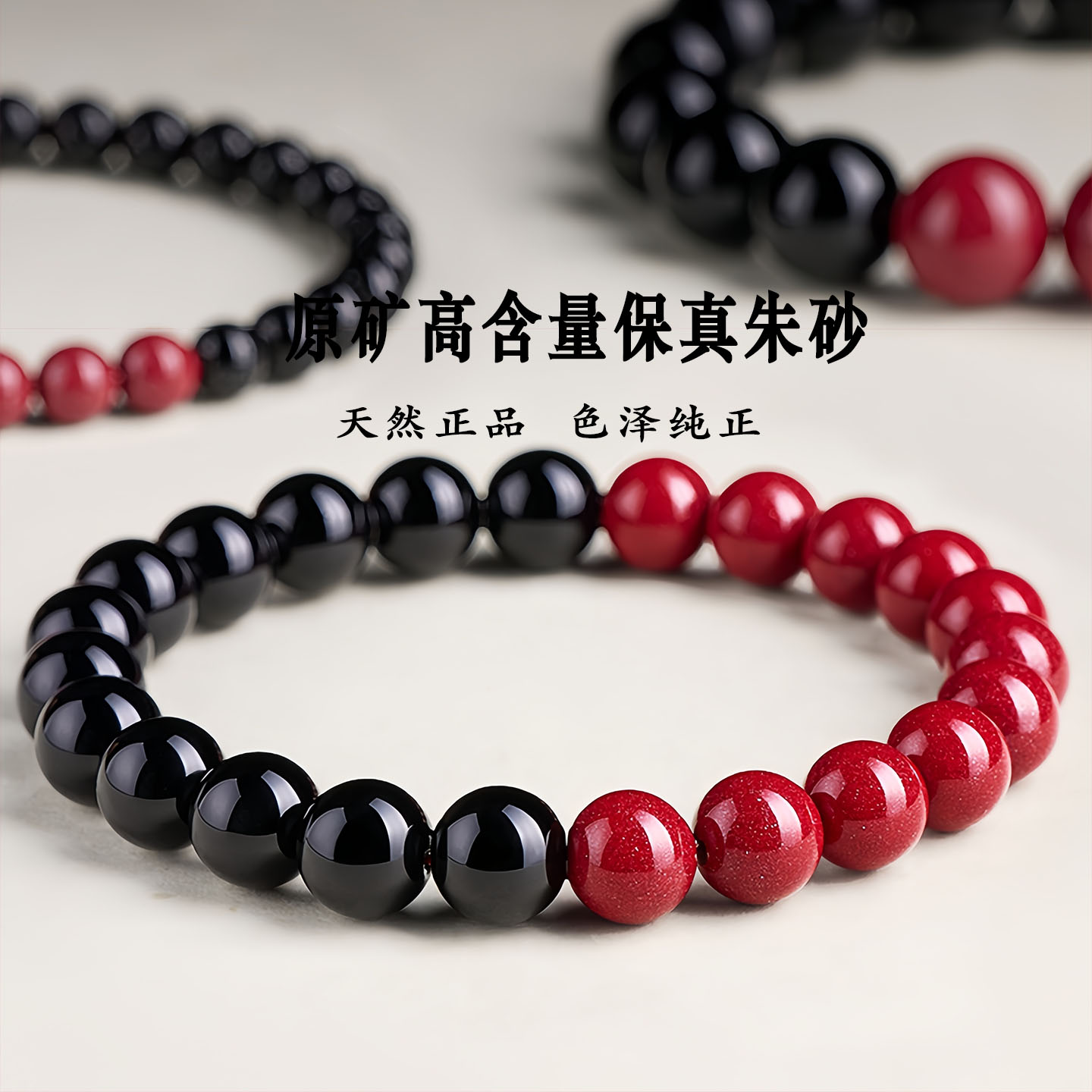 高含量正品朱砂手串女士佩戴黑曜石手链男士马年本命年红色手饰