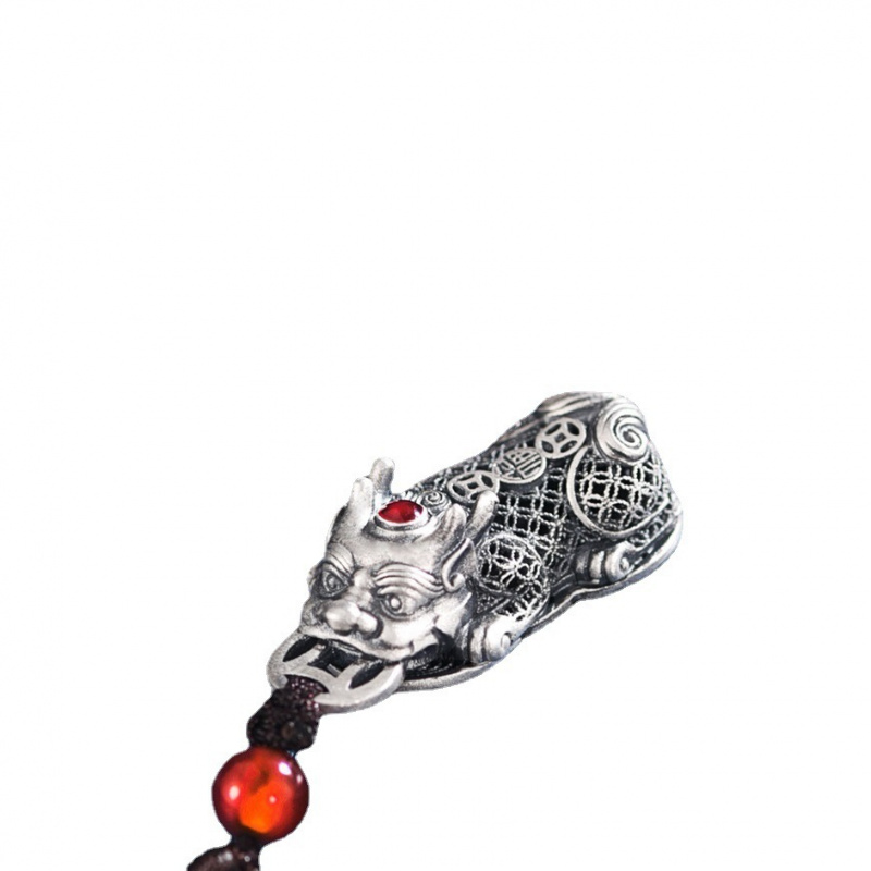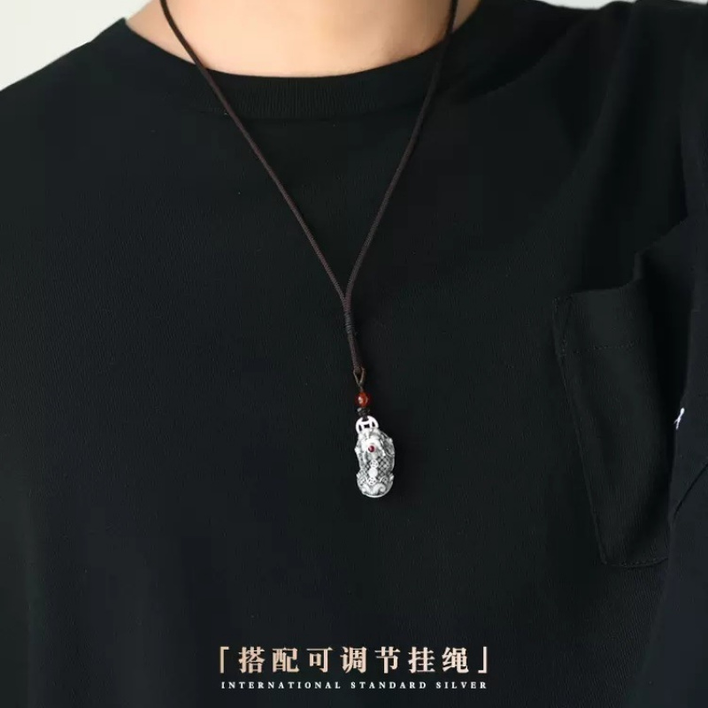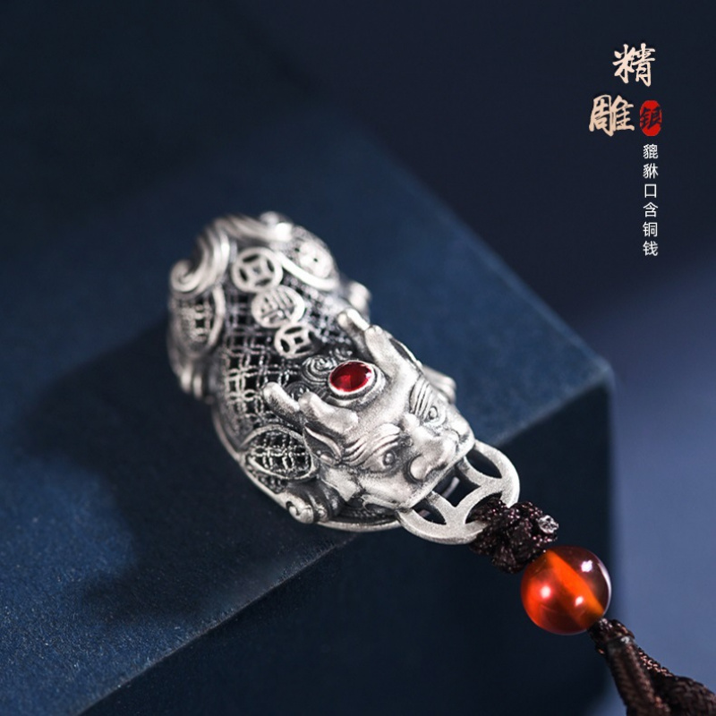 【好运】925纯银镂空祥瑞大号貔貅吊坠男女士复古个性霸气潮车钥