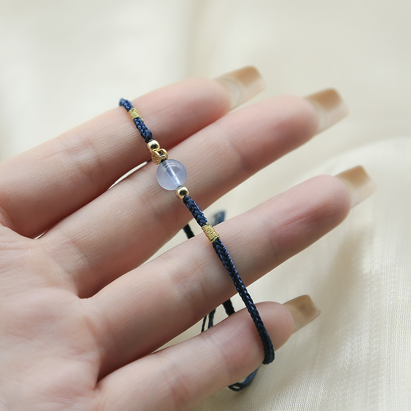 山间原创设计海蓝托帕石手绳手工制作简约好人缘好运礼物情侣手链