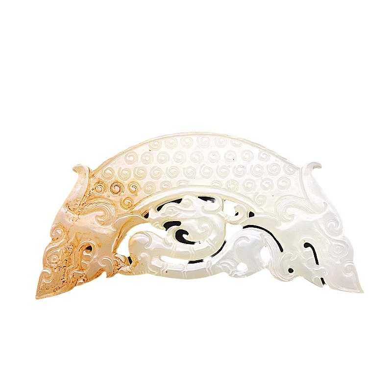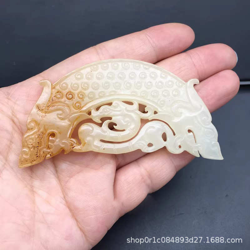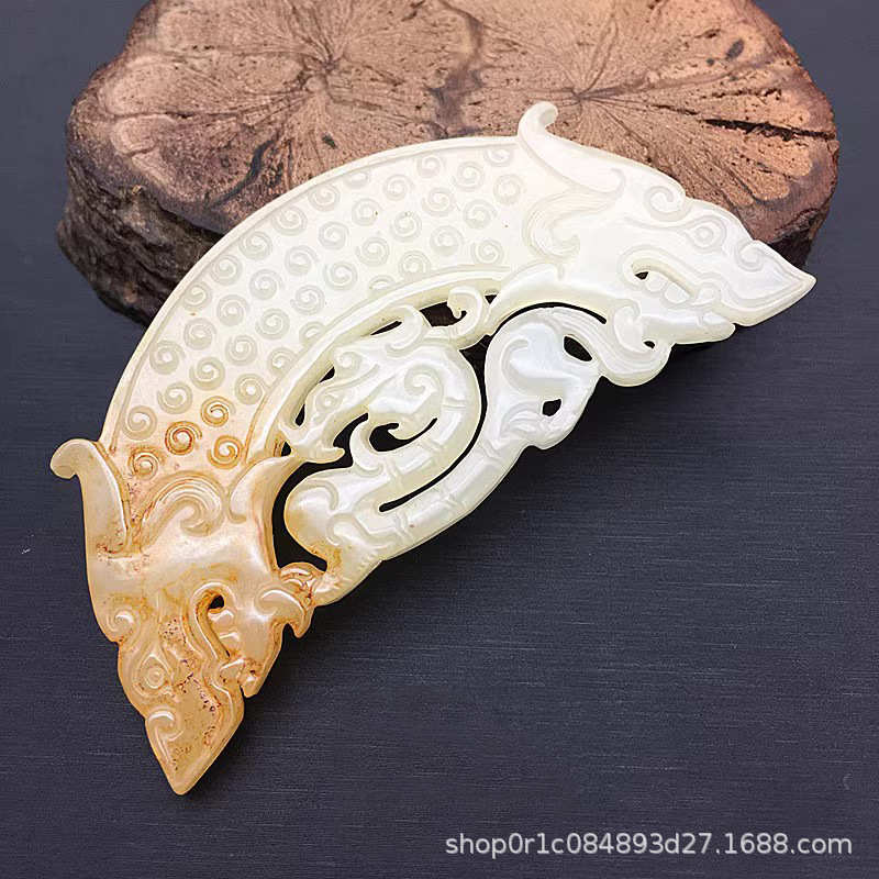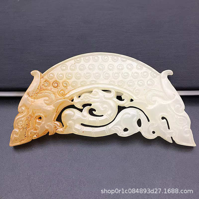 琉璃仿白玉做旧玉璜玉璧仿古龙吊坠挂件半圆形蝌蚪纹雕刻玉佩腰佩