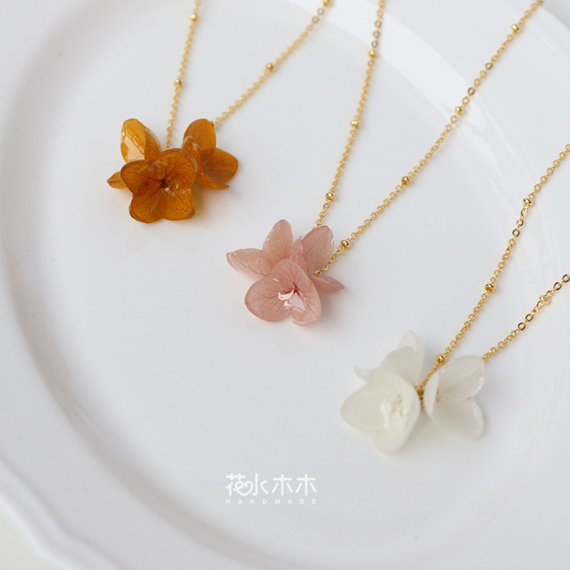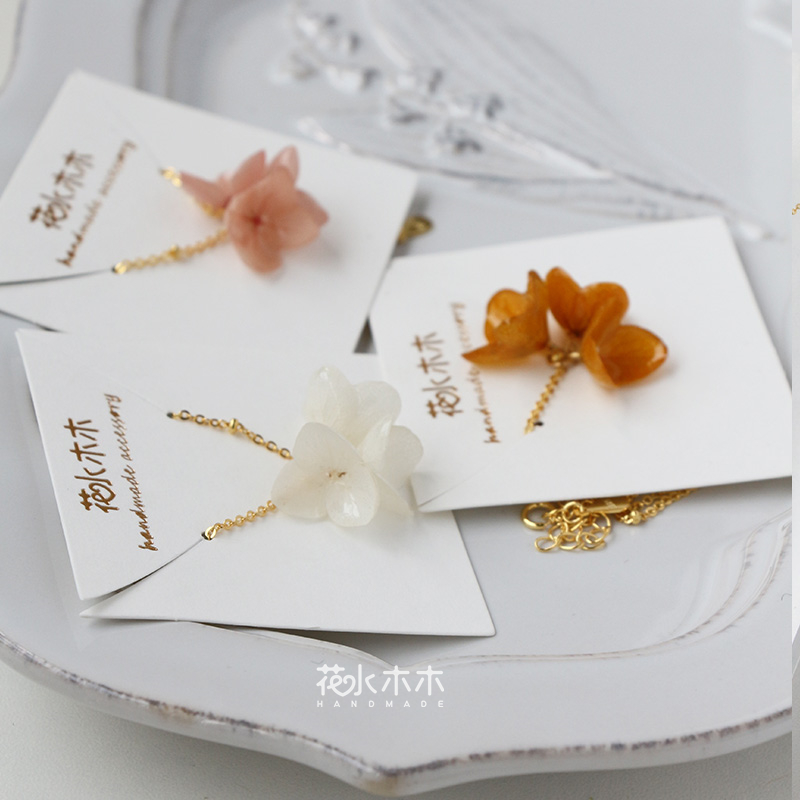 手作小众设计绣球永生花簇项链锁骨链气质ins风白色耳饰品