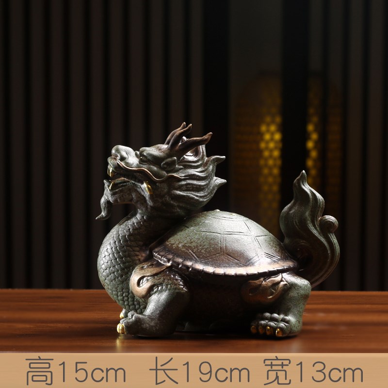 陶瓷龙龟摆件f招财办公桌面摆件客厅酒柜装饰品工艺品乔迁新居礼