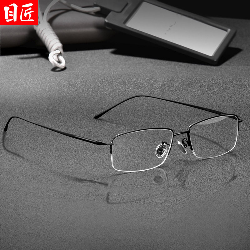 目匠超轻纯钛半框近视眼镜框男大脸可配镜片合金钛架眼睛框架镜架