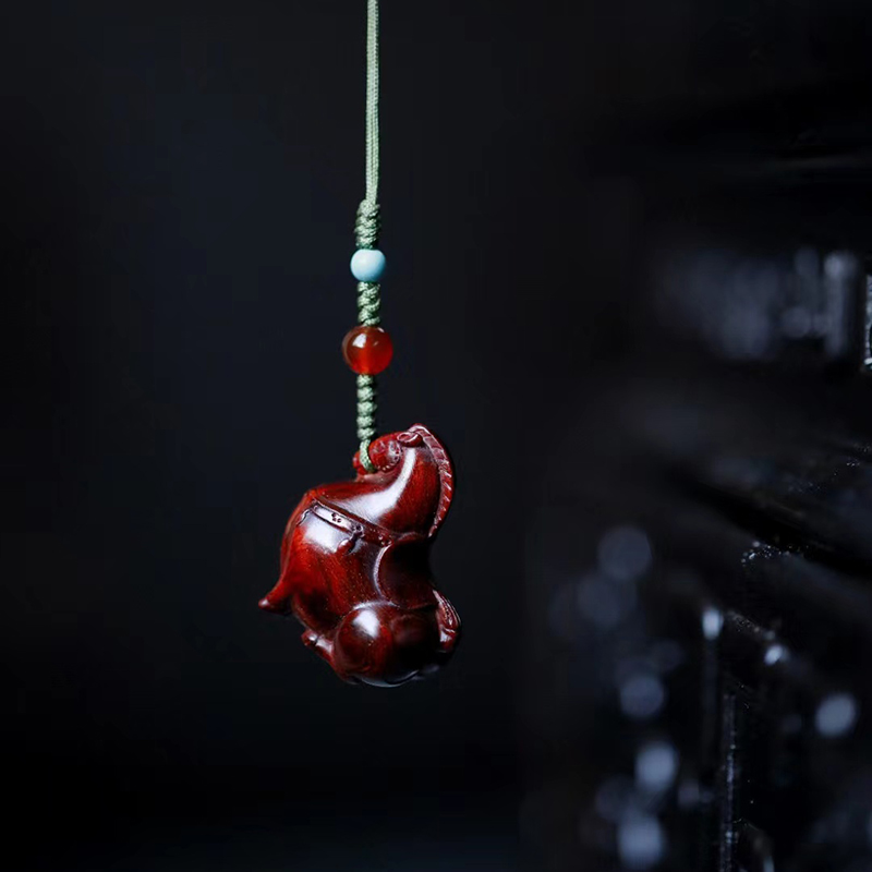 小叶紫檀吊坠唐马木雕挂件十二生肖手机吊坠马到成功钥匙扣手把件