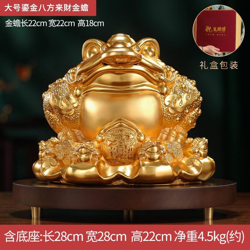 鎏金八方来财全黄铜工艺品金蟾收银台J摆件办公摆放乔迁开业礼