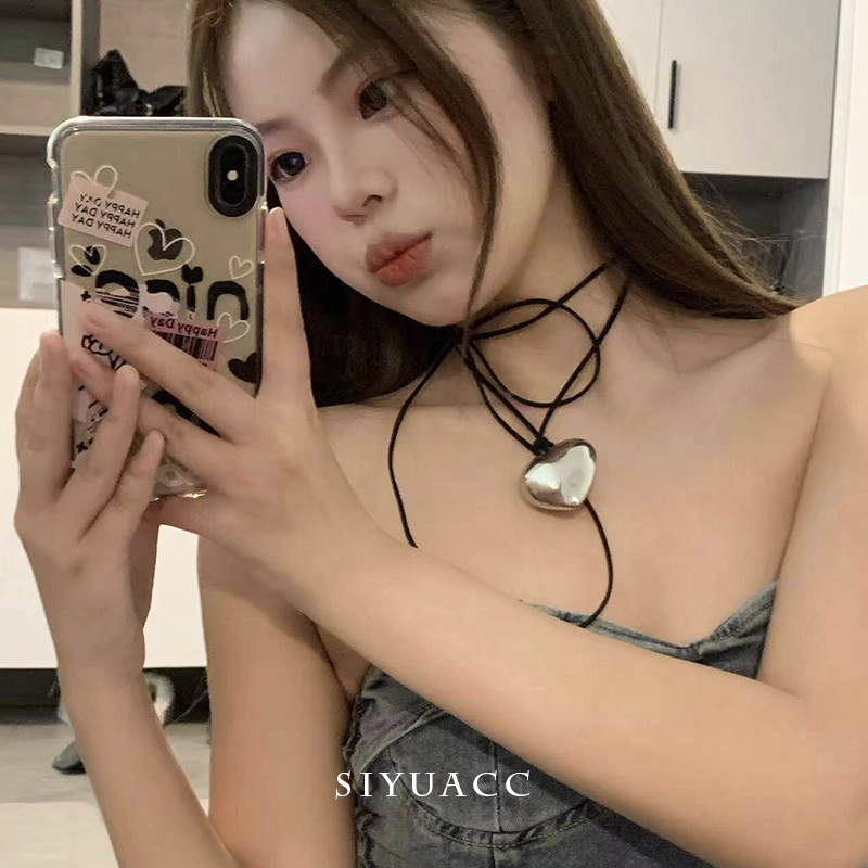 fever同款银色爱心吊坠项链choker2024新款颈链脖链锁骨链配饰女