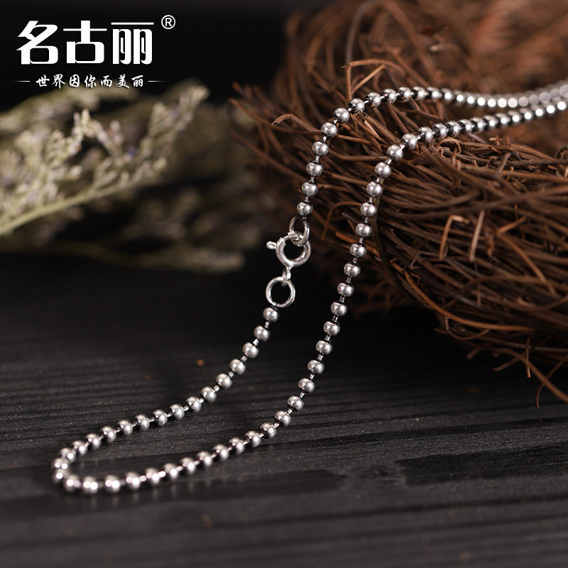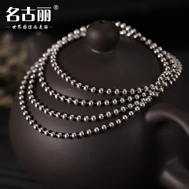 泰银圆珠链S925银项链女素链仿古纯银珠珠银链子潮男毛衣链加长款