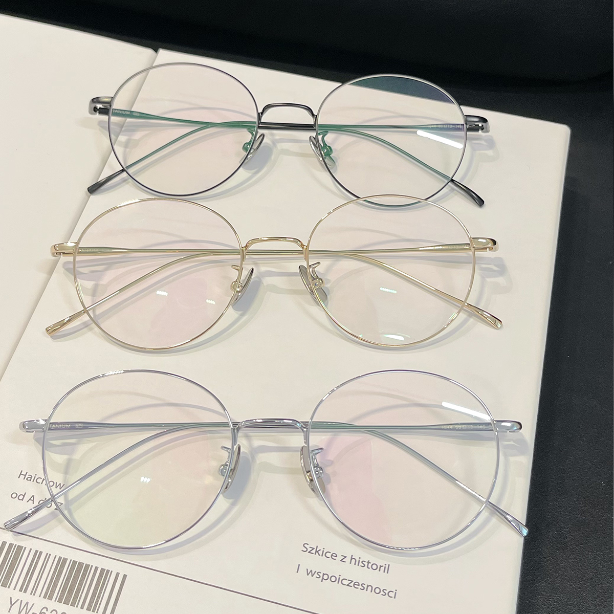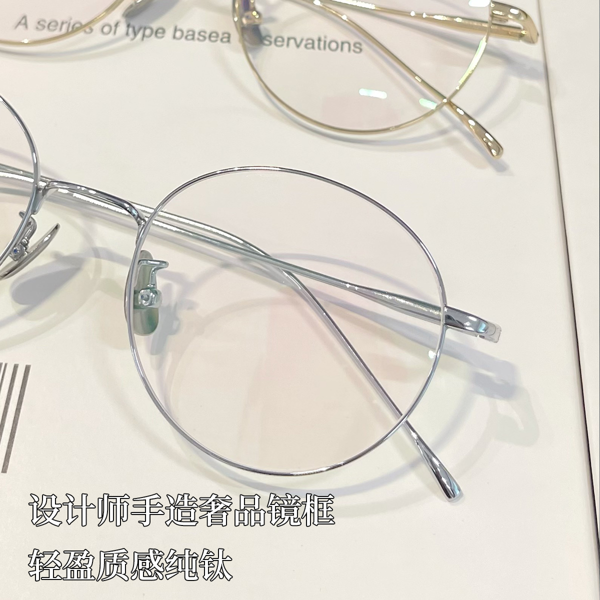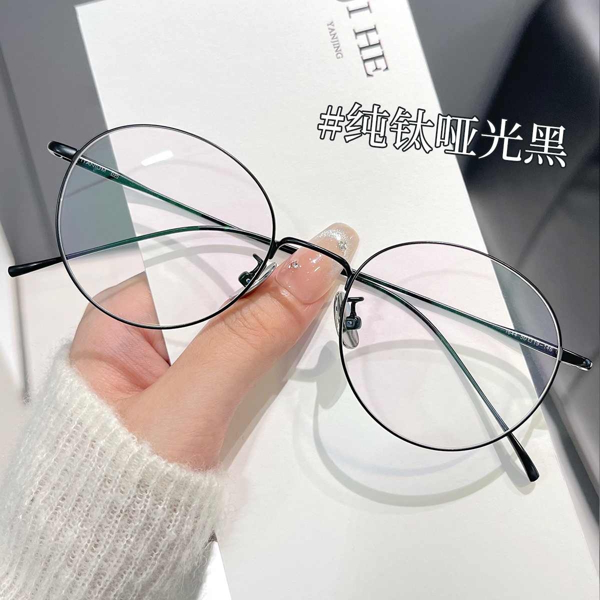 超轻纯钛金丝眼镜近视女可配有度数防蓝光圆框高级感显脸小眼睛架
