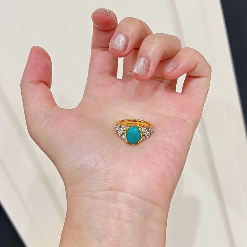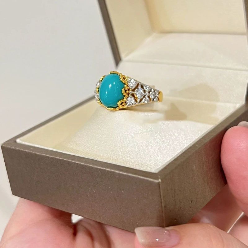 XBK宫廷风华丽满钻复古镶嵌食指戒指绿松石Vintag小众分金戒设计