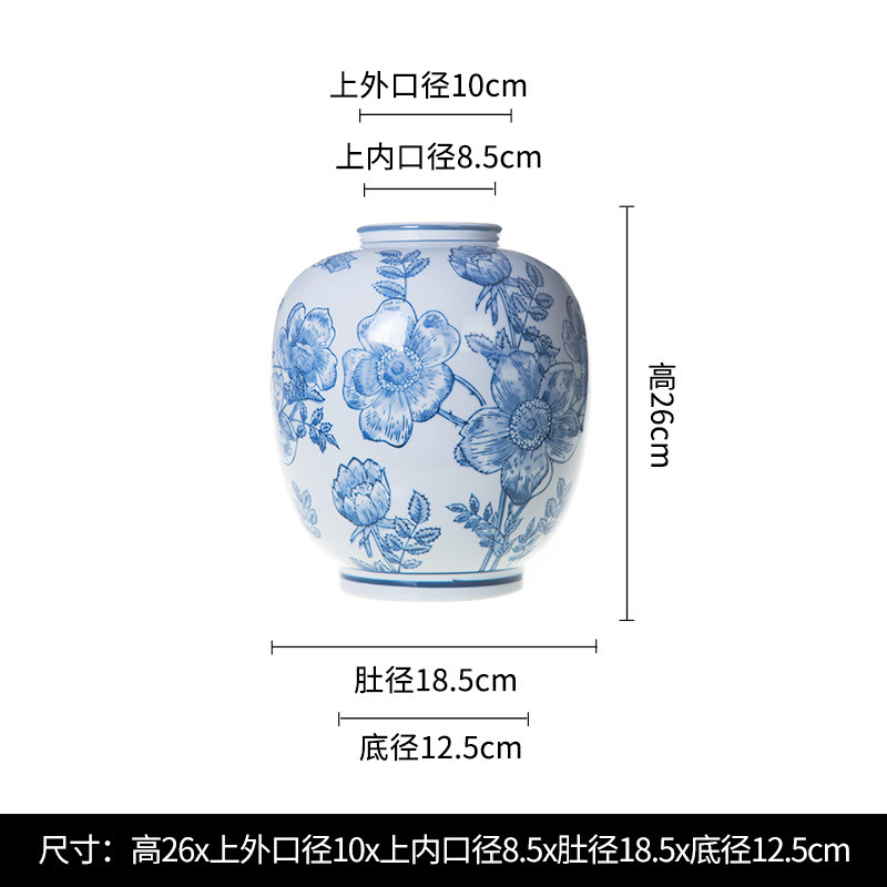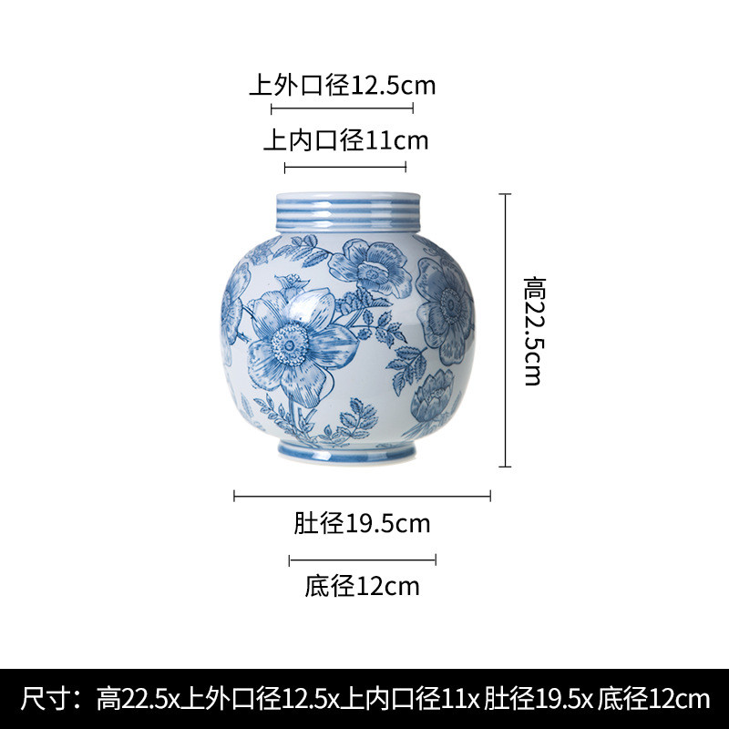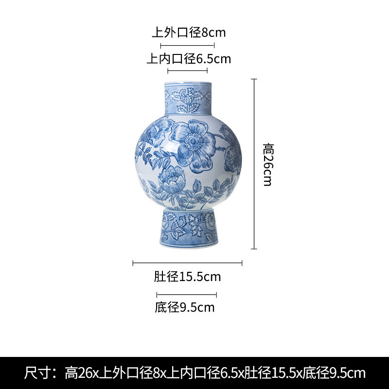 中式青花瓷复古禅意手绘陶瓷花瓶半客厅玄关软装饰品桌面插花摆件