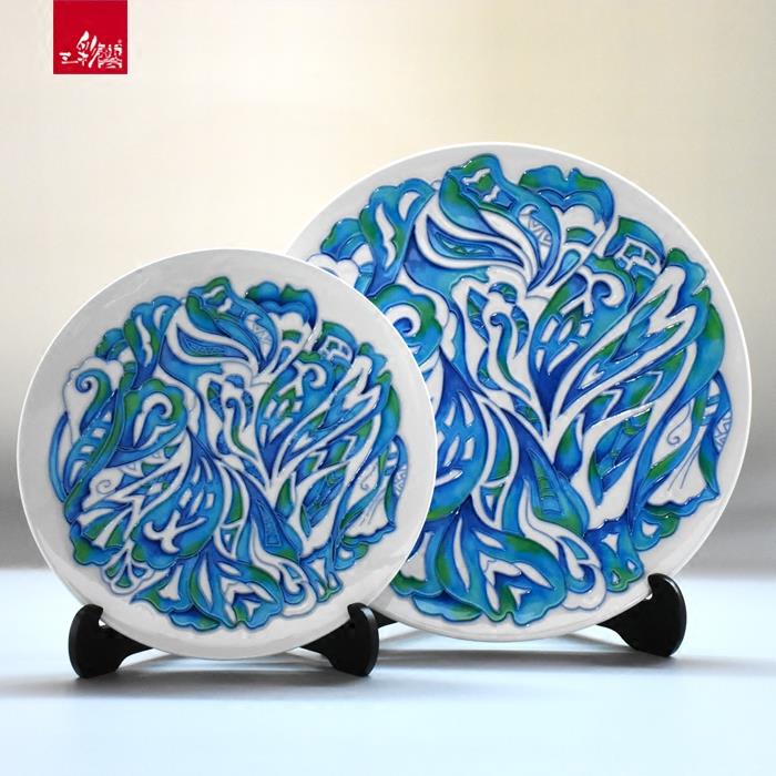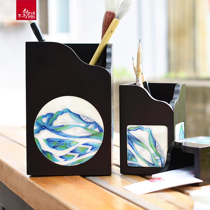 三彩艺文创系列家居饰品陶瓷摆件笔筒收纳盒零钱罐插花器茶托纸抽