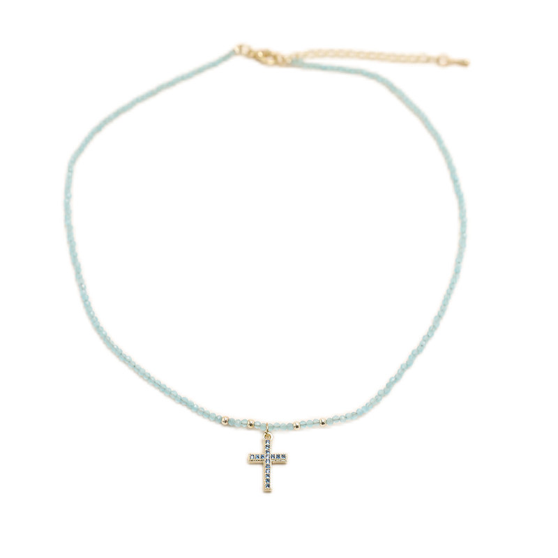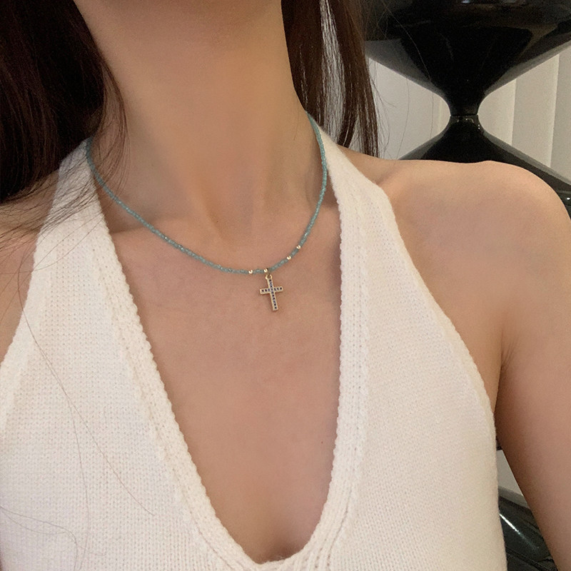 高级十字架项链女2025新款细款串珠锁骨链法式小众设计感甜酷颈链