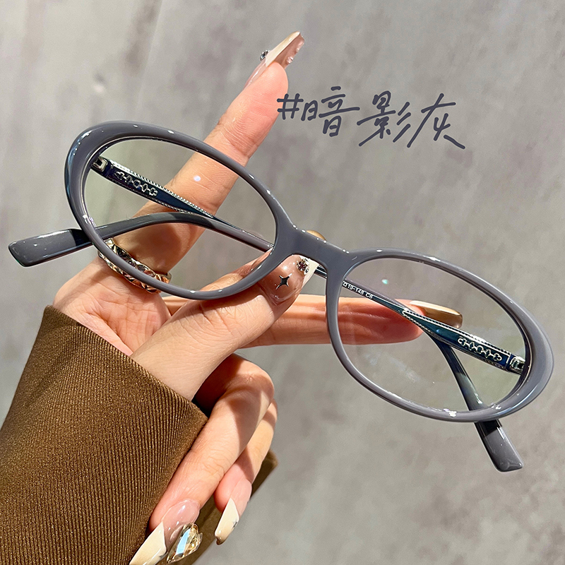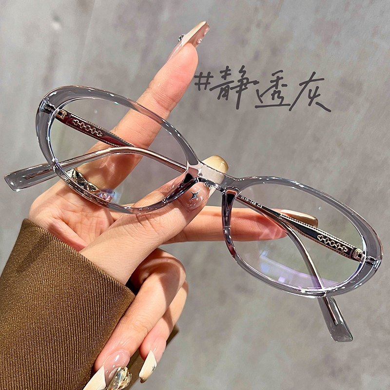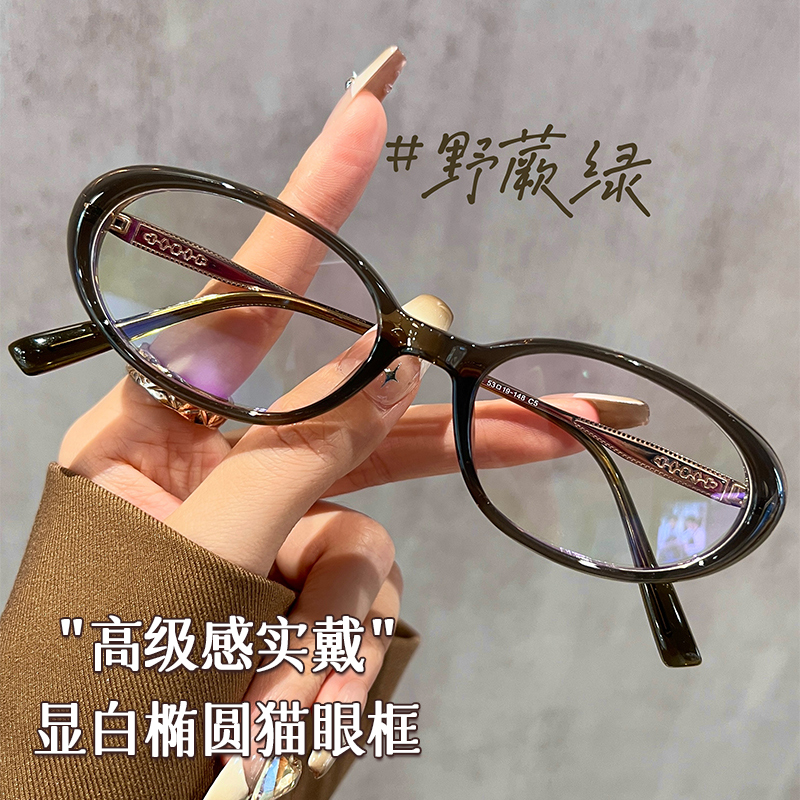 复古椭圆框猫眼眼镜近视女可配有度数素颜显白方圆脸眼睛超轻钛架