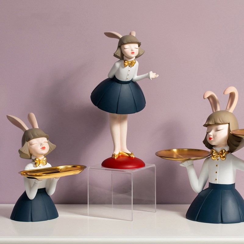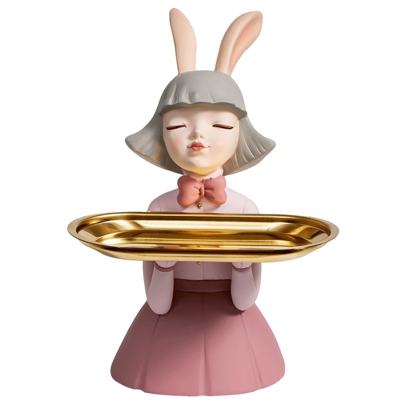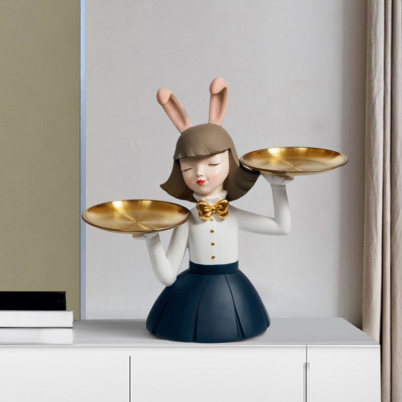 北欧创意兔女孩摆件钥匙收纳托y盘客厅桌面家居房间装饰品轻奢摆