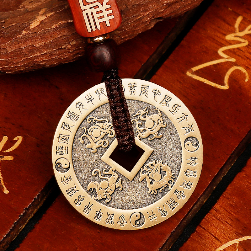 九字真言紫薇讳铜钱吊坠临兵斗者皆阵列前行四神兽平安护身符项链