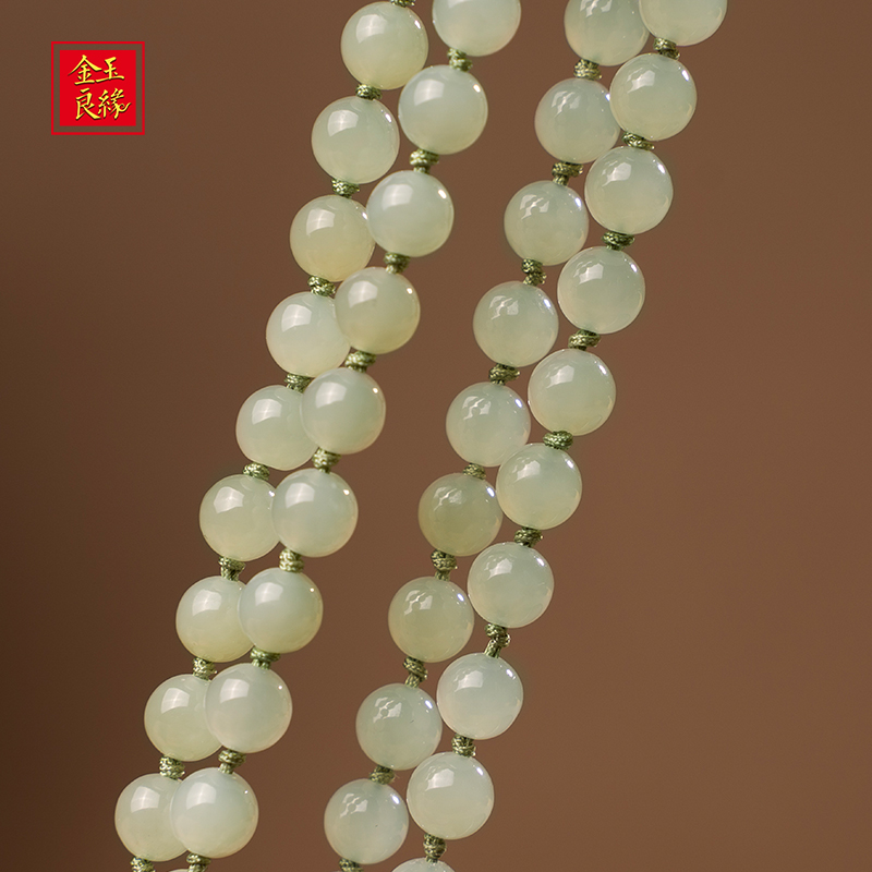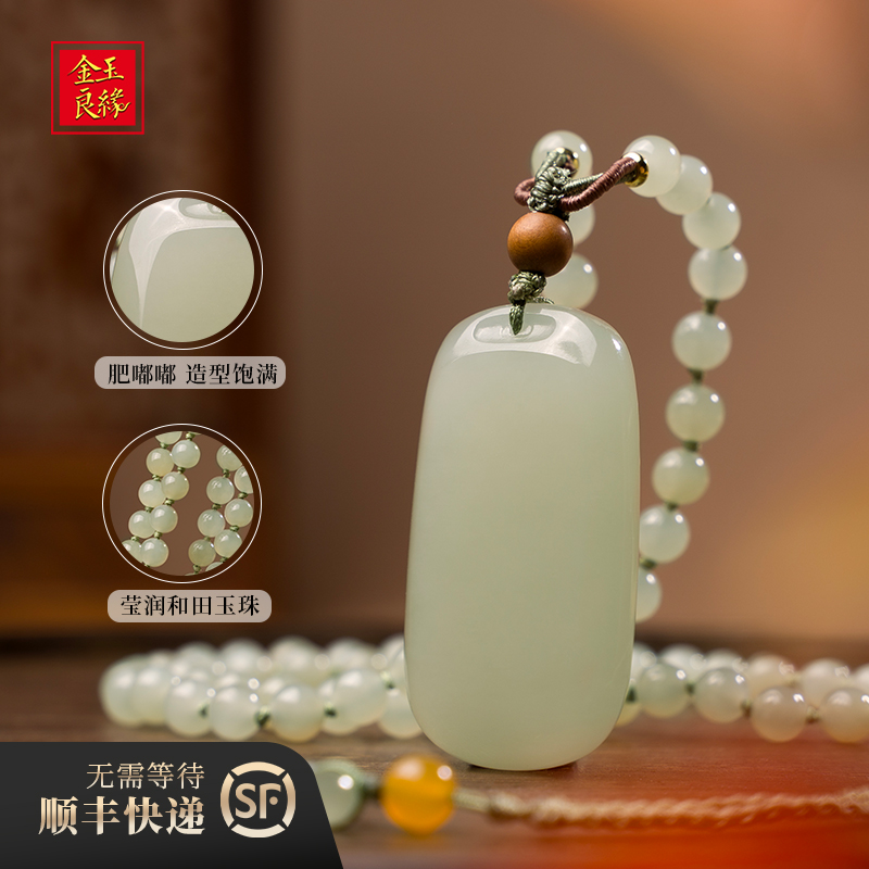 金玉良缘和田玉吊坠【知黛】中式挂坠项链全珠链青白玉平安无事牌