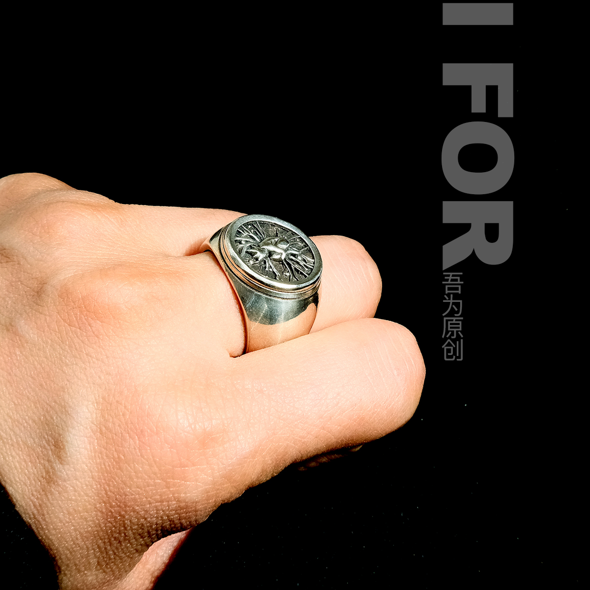 纯银诞生戒指男生命之树个性小众吾为原创树枝人眼睛重工s925银饰
