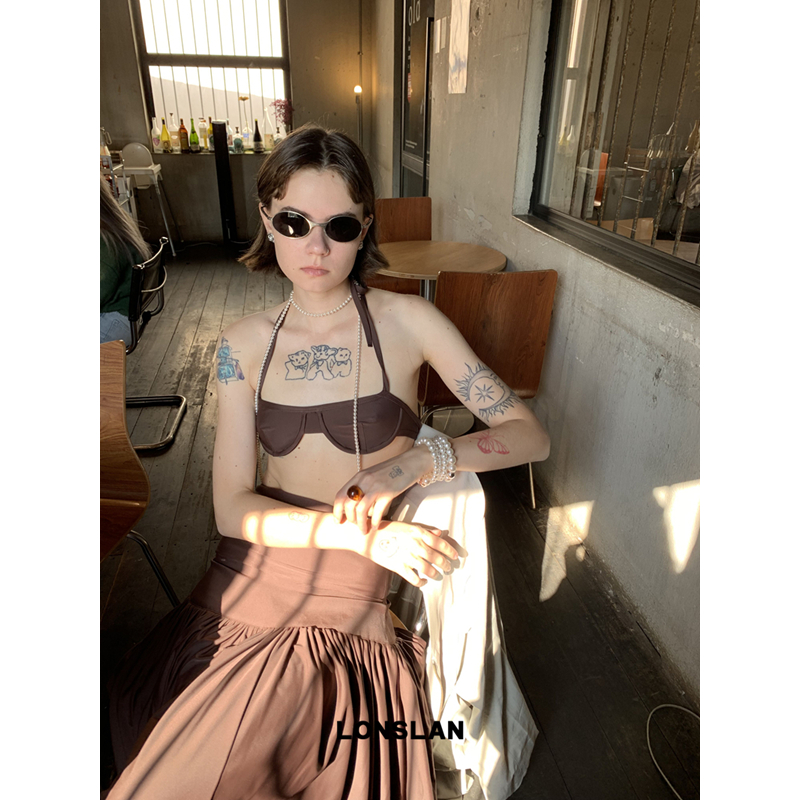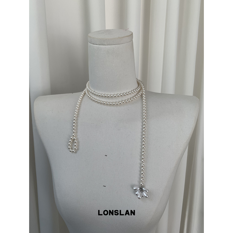 LONSLAN ACC 2025SS韩国小众设计白色气质珍珠长款多层花朵项链