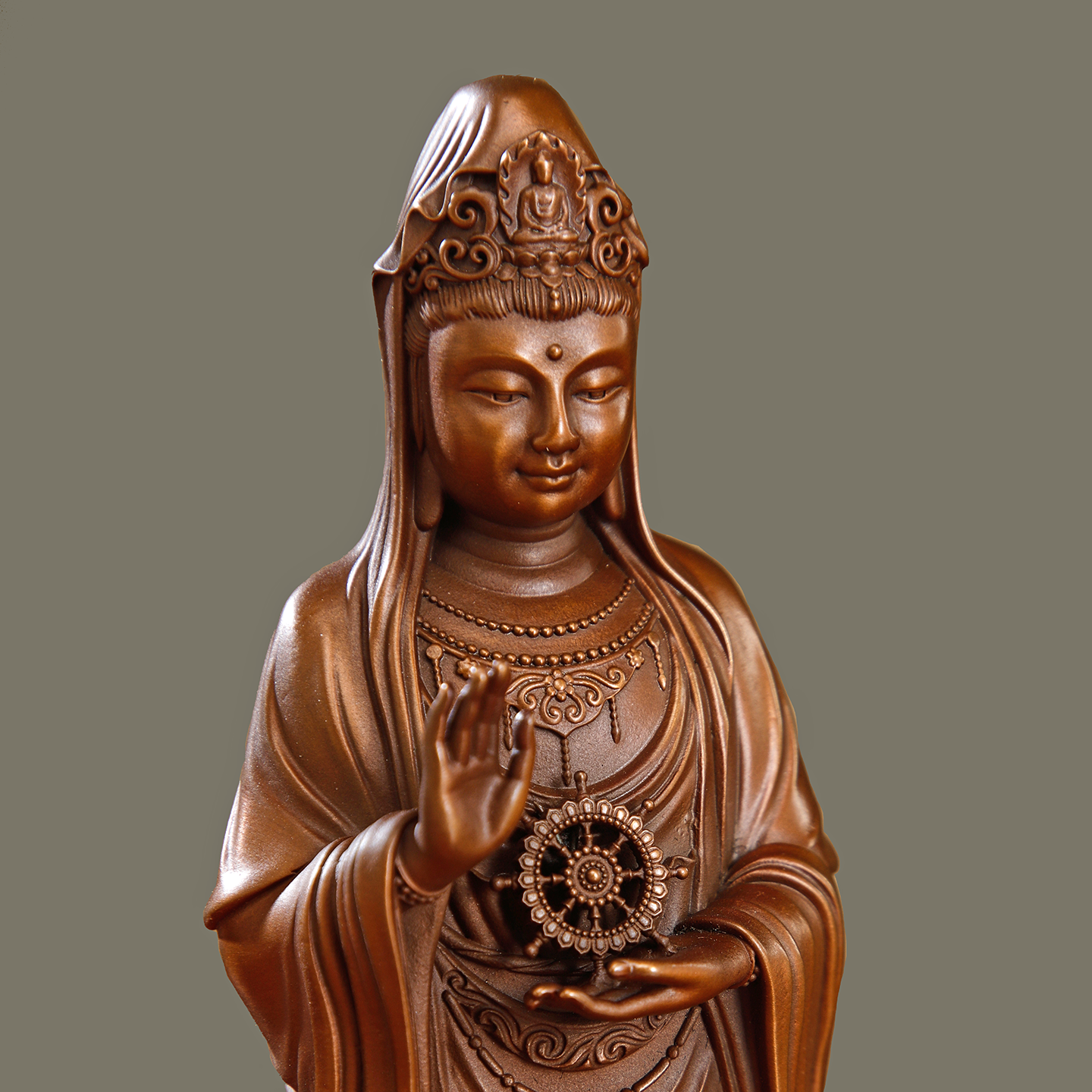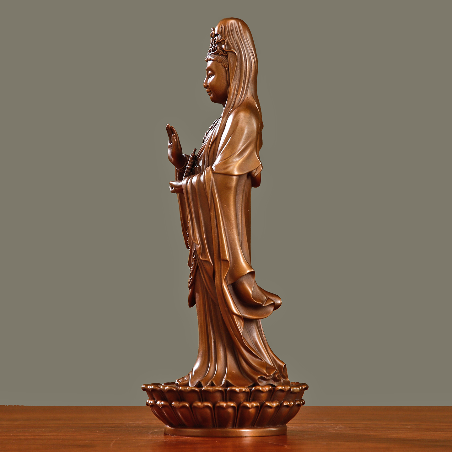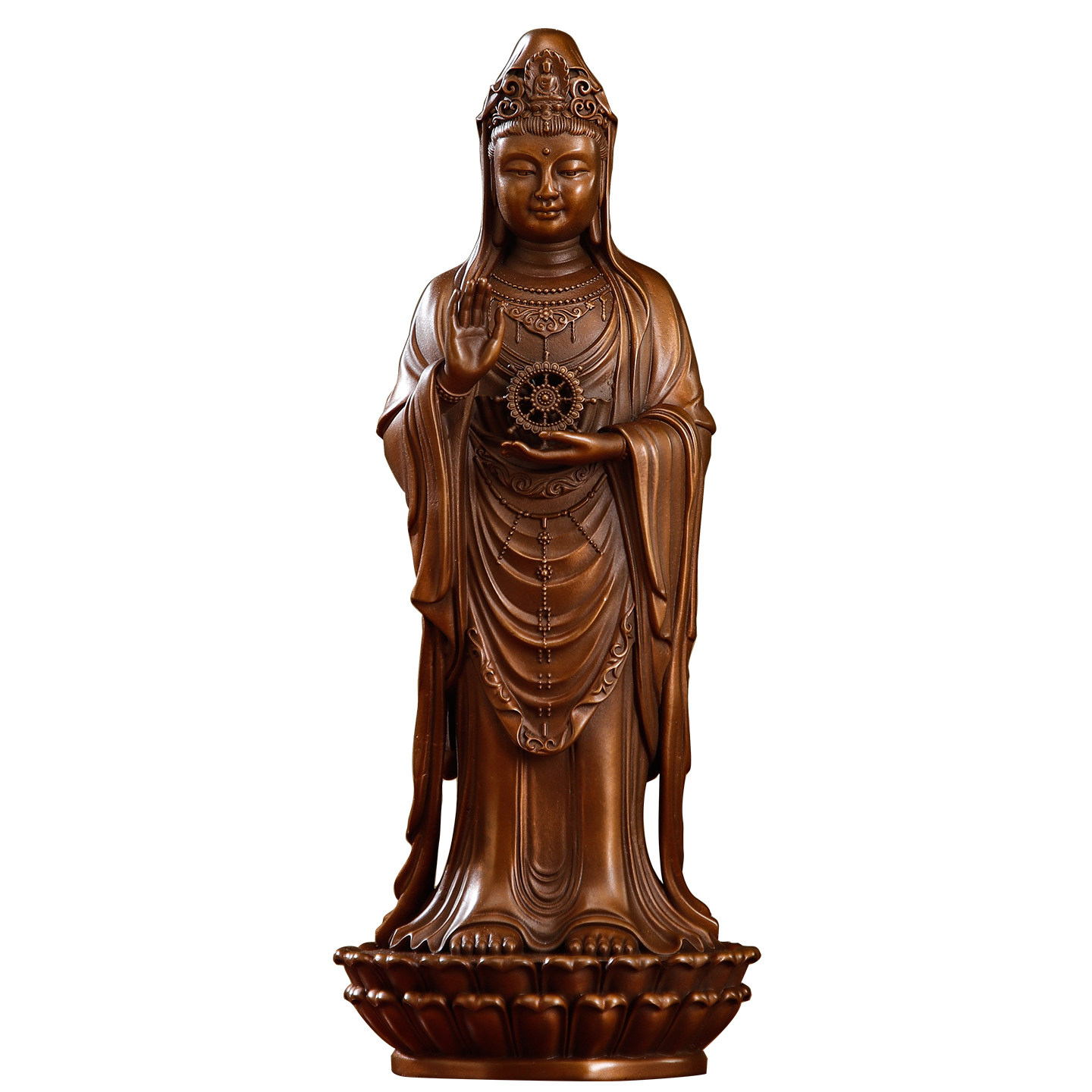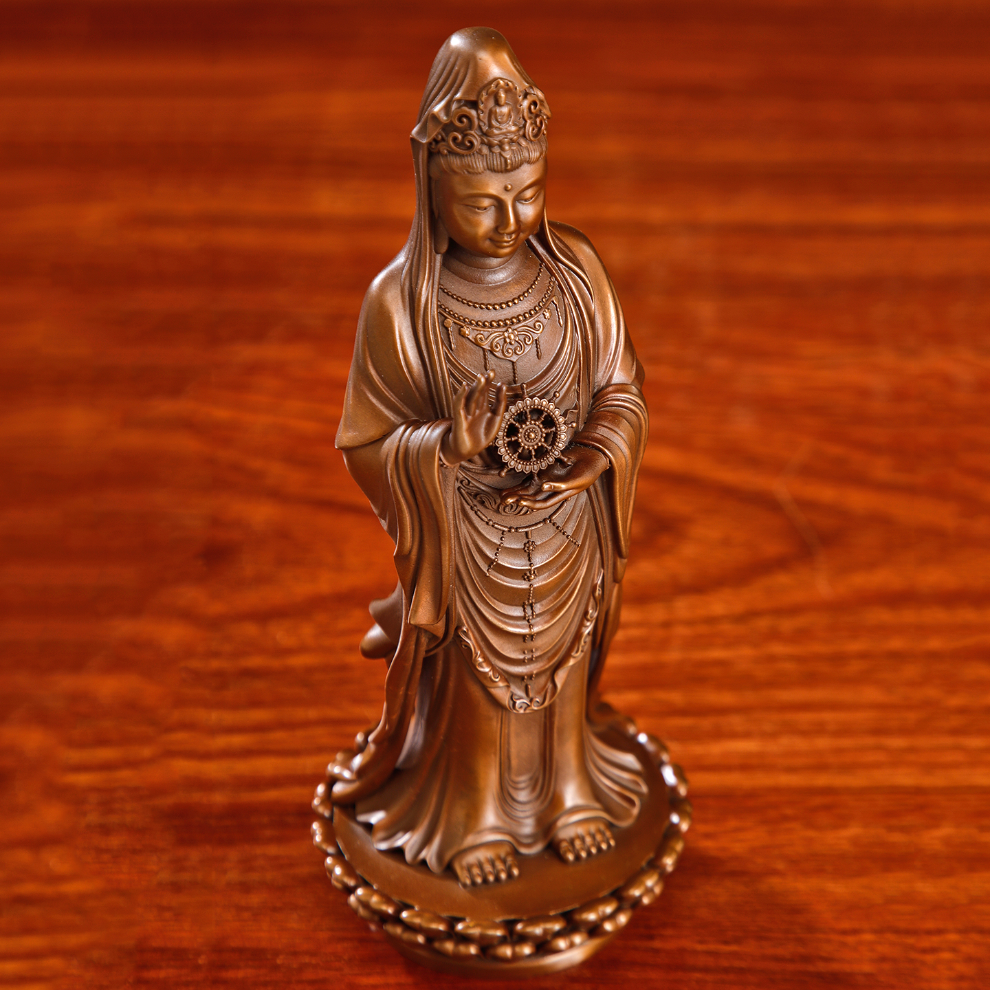 圆通佛具纯铜南海观音菩萨佛像供奉摆件平安观世音双莲花法轮观音