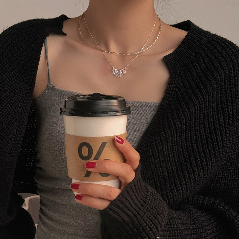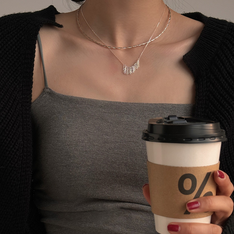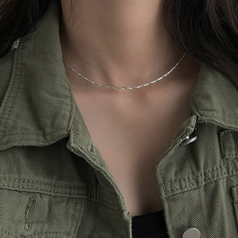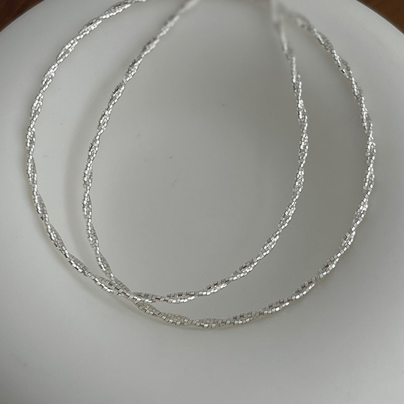 s925纯银日韩时尚双线条麻花劲拧结冷淡风时尚通勤百搭项链颈链女