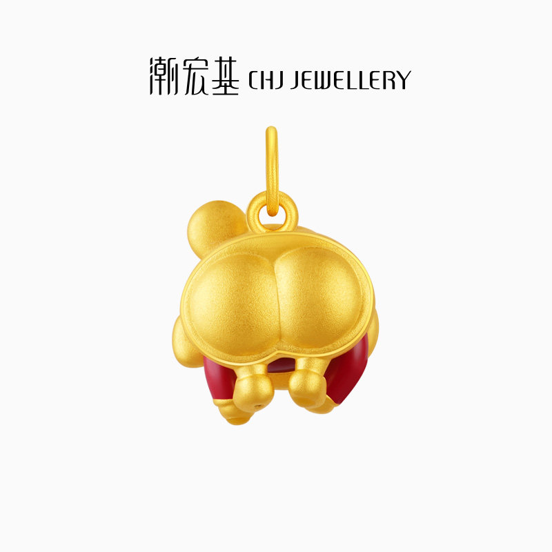 潮宏基蜡笔小新指腚能行足金吊坠黄金挂坠5D硬金转运串珠磁吸 X