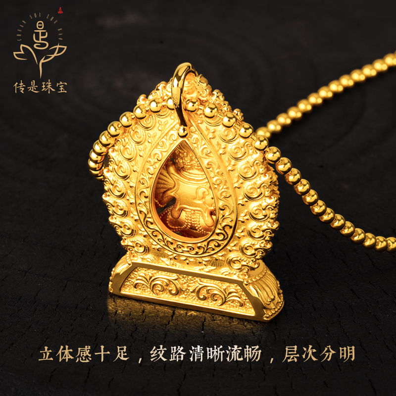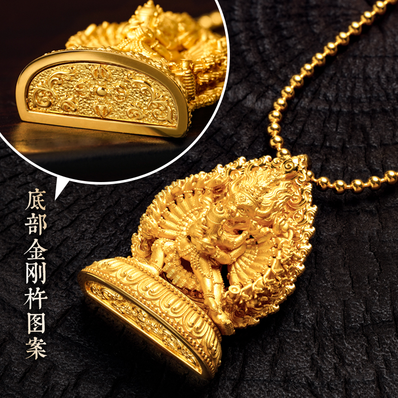 传是藏传大威德金刚吊坠纯银镀金项链男女中国风挂坠车载摆件挂件