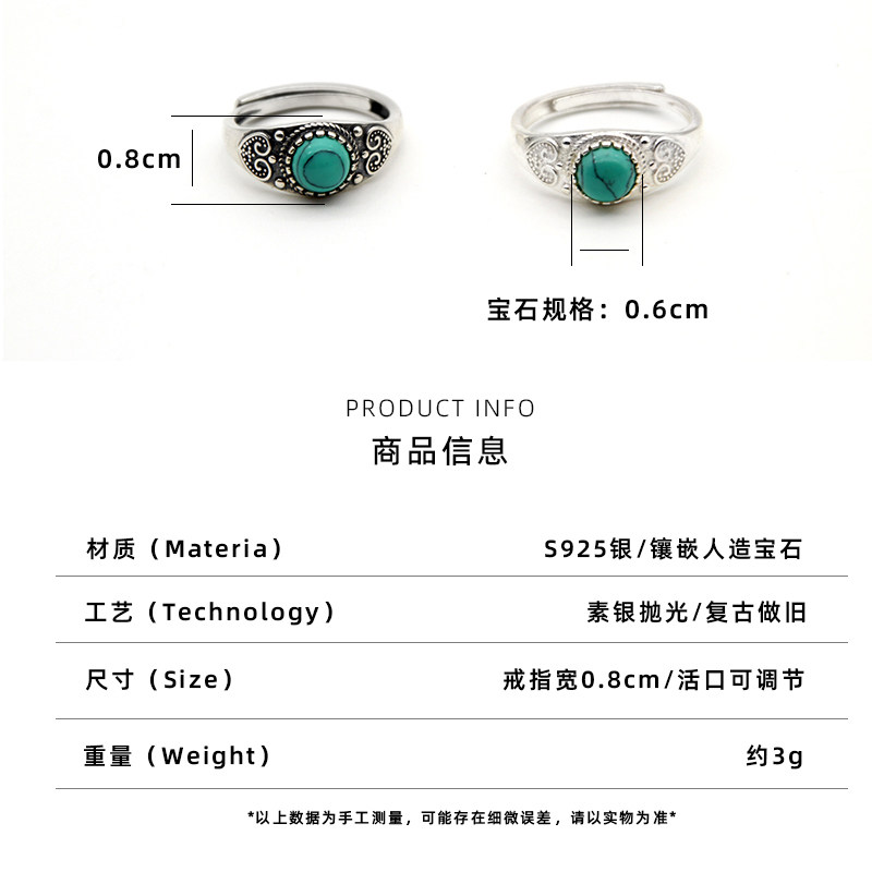 蒙歌银饰民族风S925银复古做旧女款戒指小款简约指环素银抛光蒙古