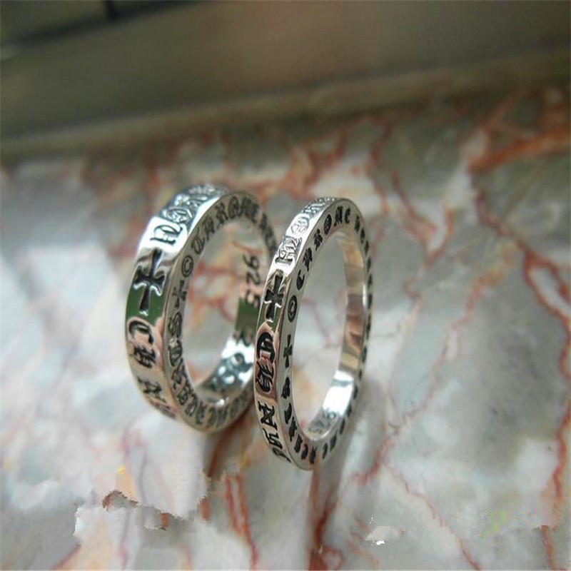 克罗潮戒指925纯银forever永恒之心CH男女款情侣尾戒轻奢对戒指环