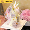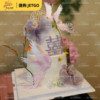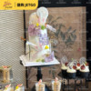 刺绣凤凰蛋糕摆件紫色仿真花蝴蝶兰插件木片屏风烘焙配件订婚结婚