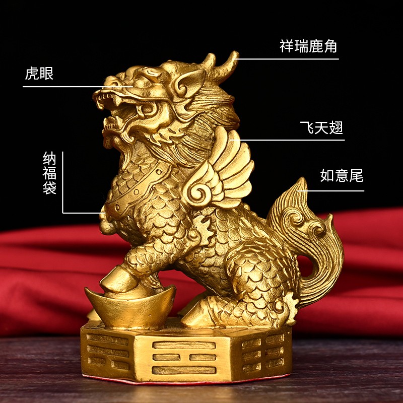寅亥堂纯铜八卦麒麟摆件家居客厅书房玄关入户门公司前台收银台放