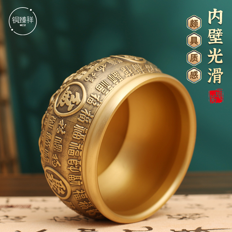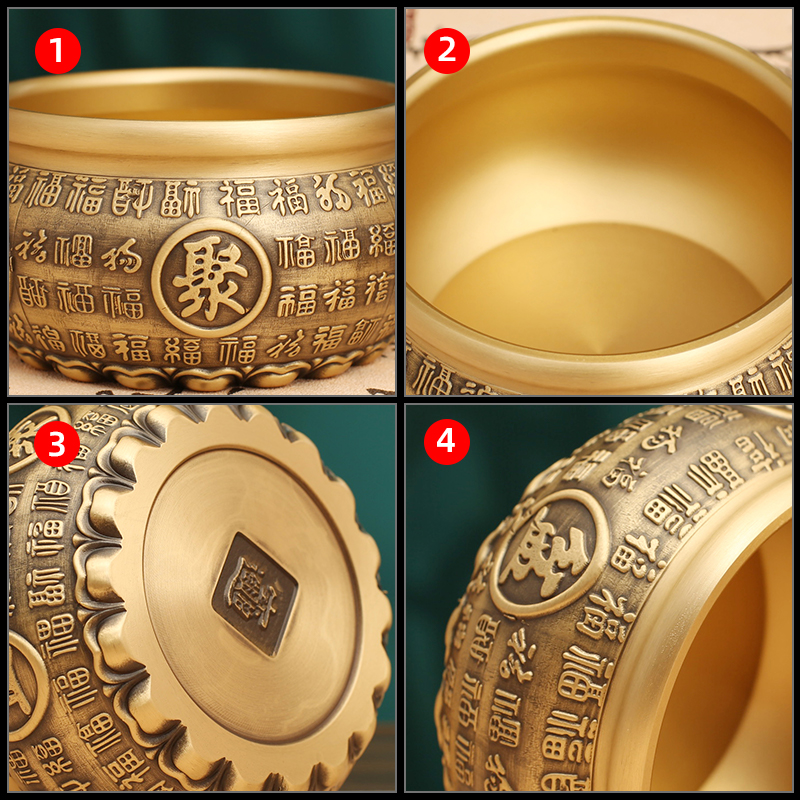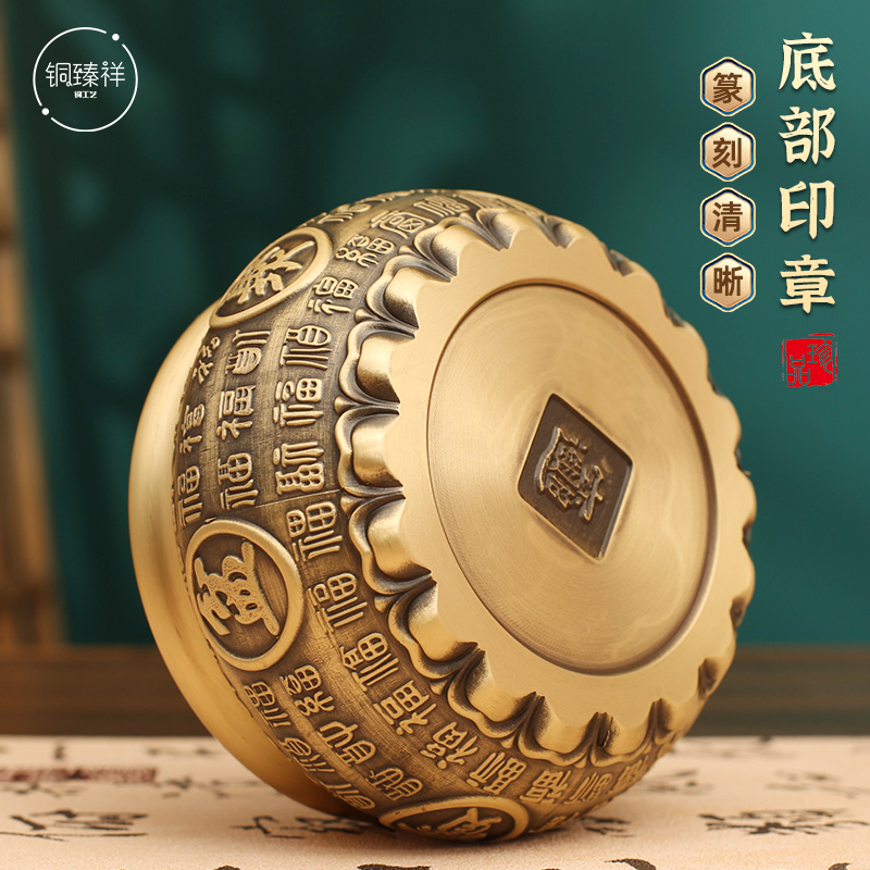 全黄铜百福聚宝盆百福缸新龙年家居好物客厅桌面玄关装饰摆件家用
