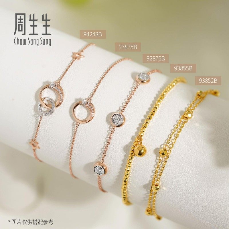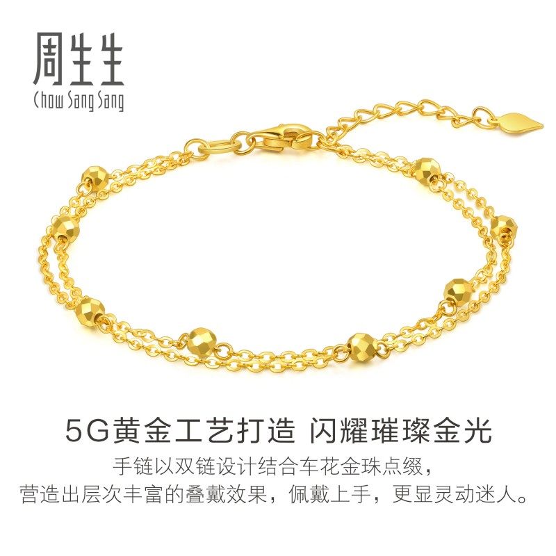 周生生Essence永系列双链车花蹦迪珠圆珠黄金手链足金93852B