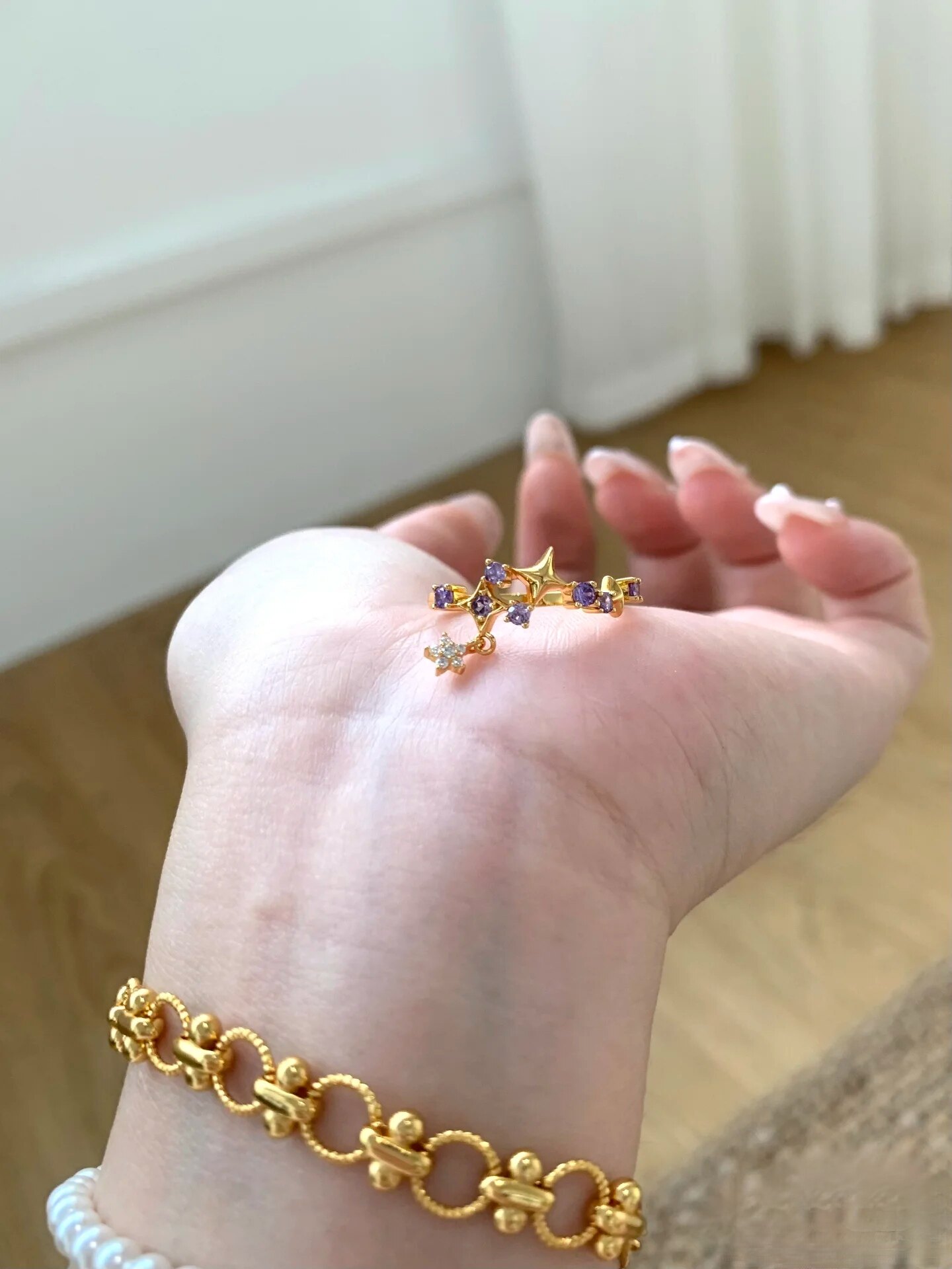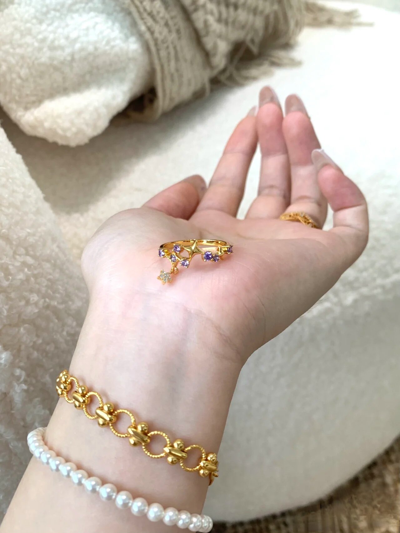 小红书爆款紫荆花水晶戒指女生紫色钻石九紫离火吉祥招财饰品礼物