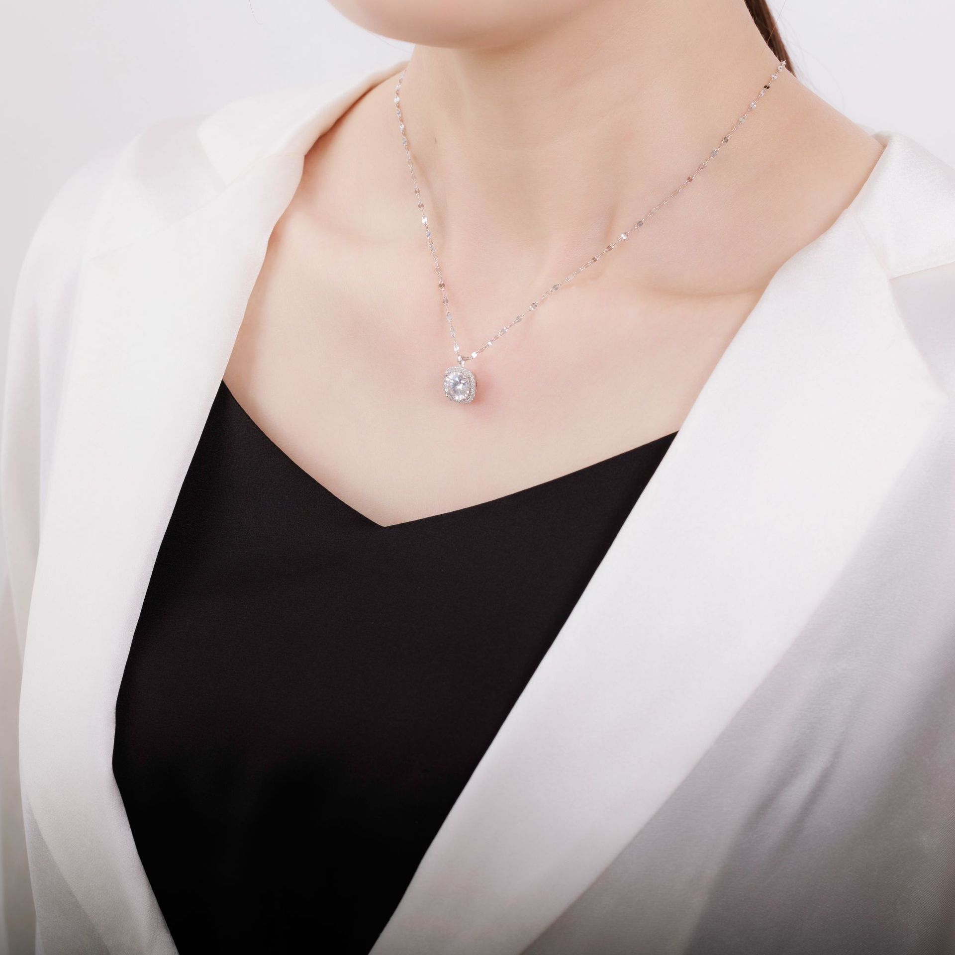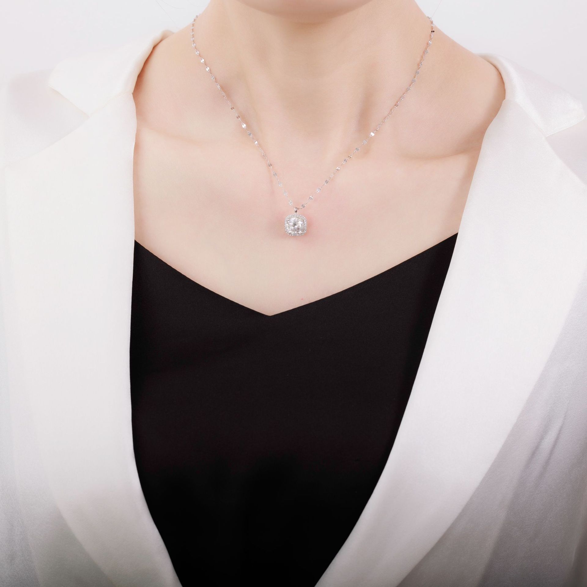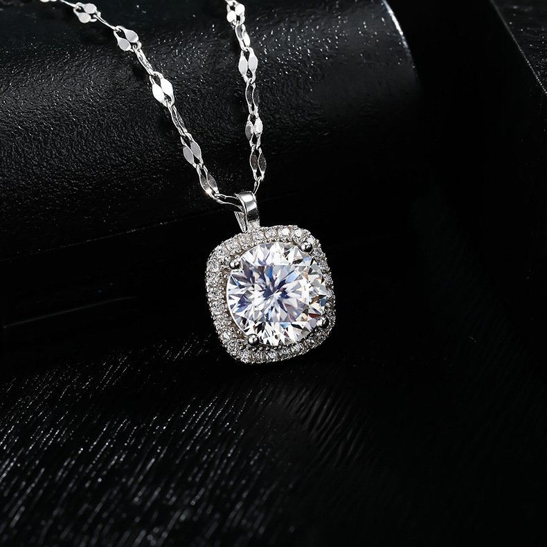 大福S925纯银经典方包2克拉莫桑钻项链抖音爆款时尚网红吊坠项饰