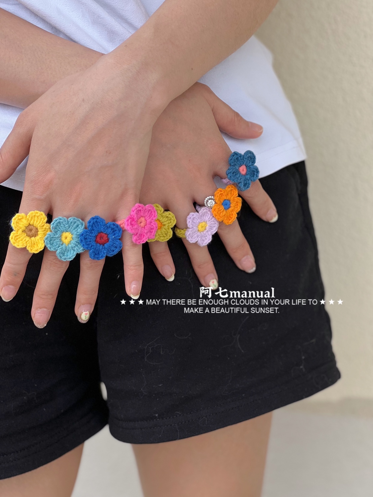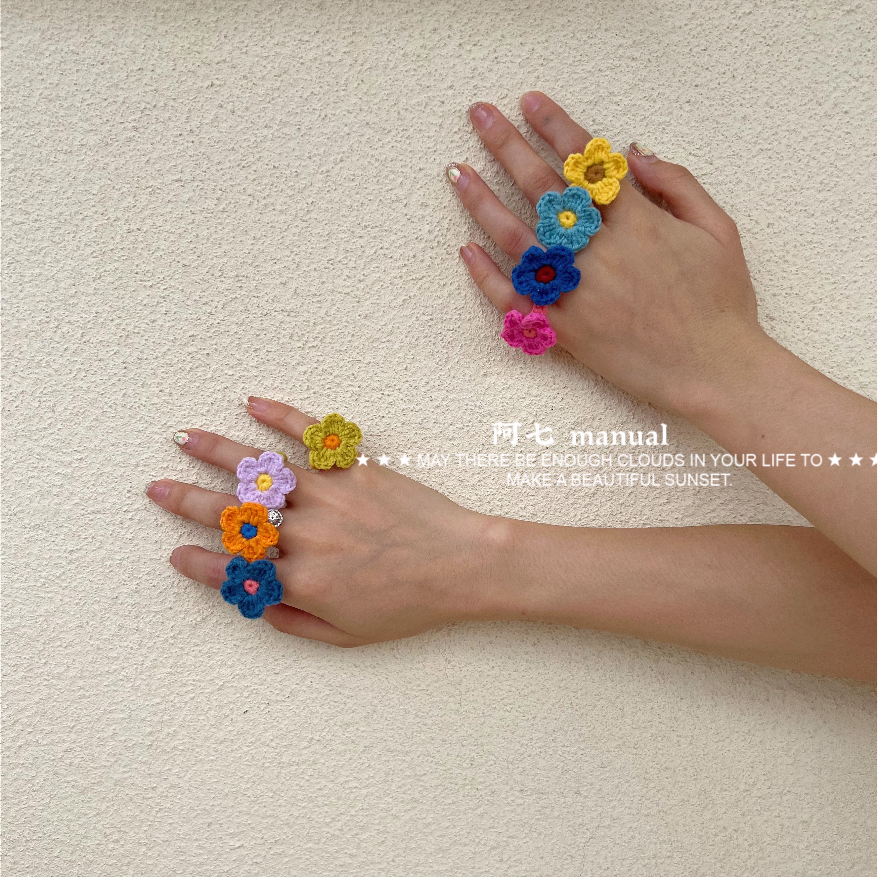 阿七mamual纯手工钩针编织孔孝真同款可爱小花花戒指小红书同款