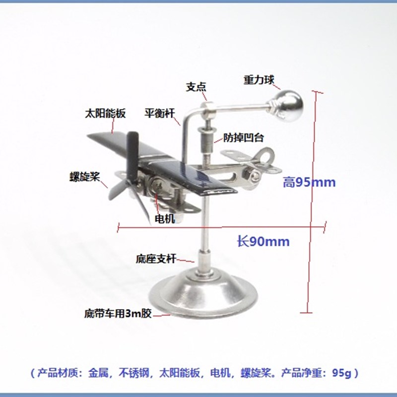 新款太阳能车载飞机摆件 平衡旋转飞机创意个Q性动态金属车饰摆件