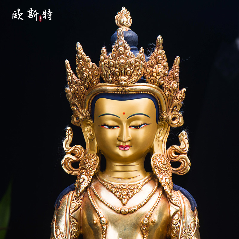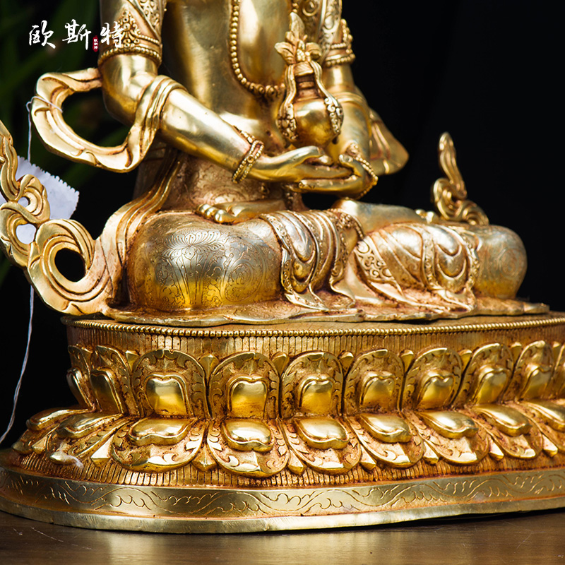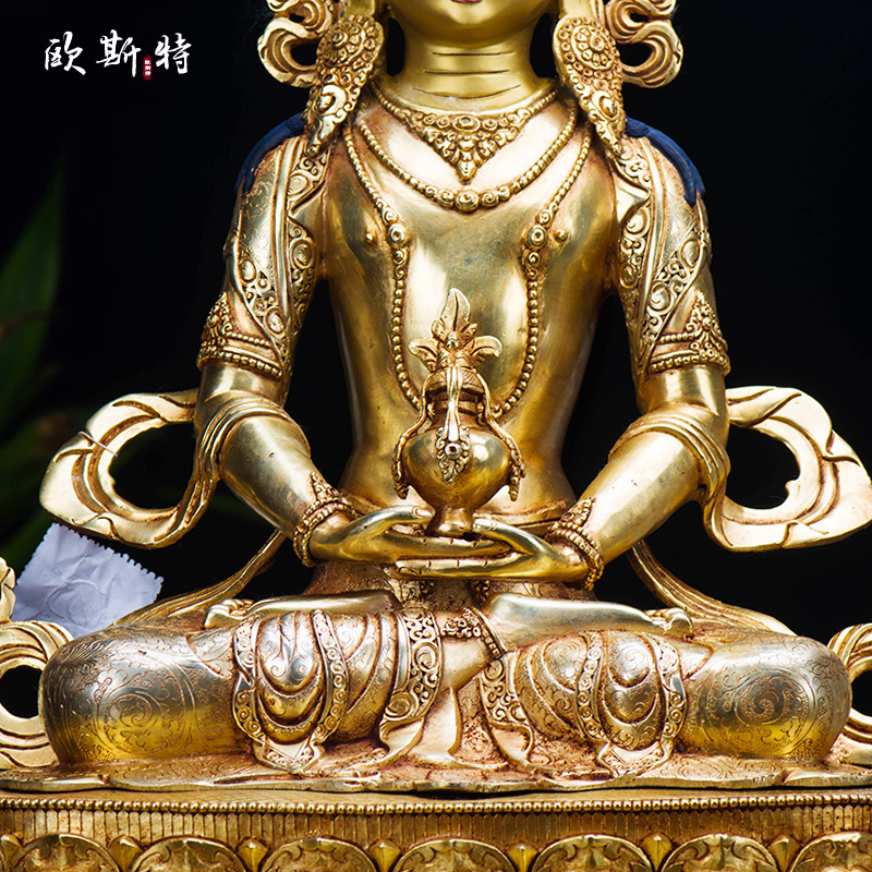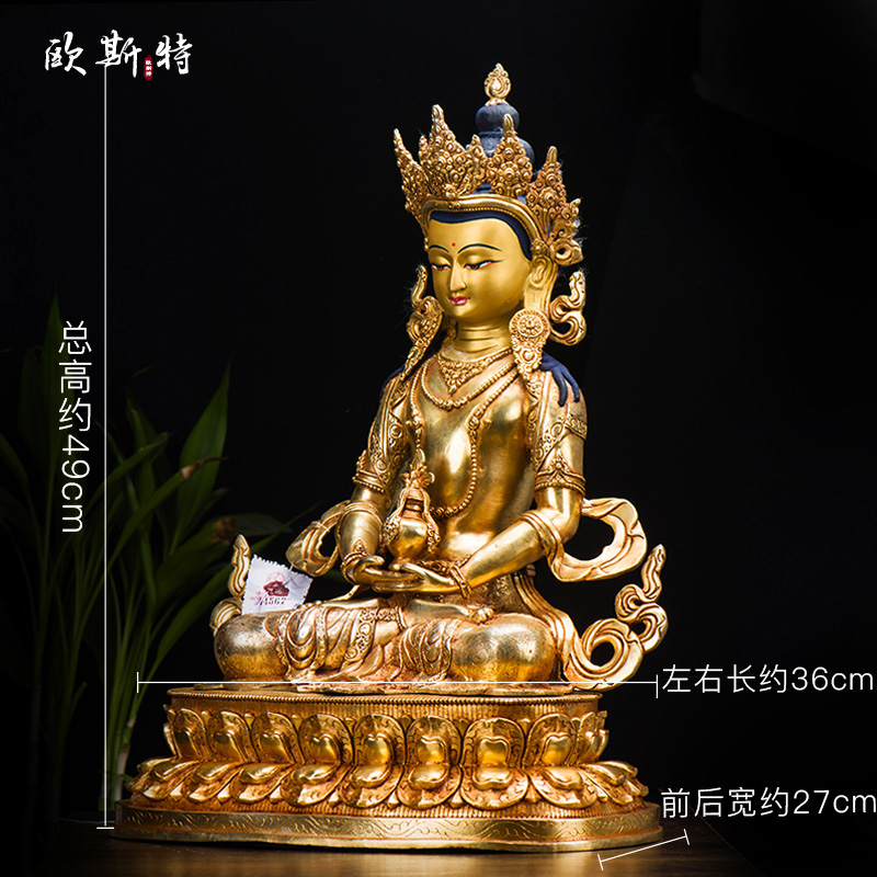 欧斯特尼泊尔常寿佛 家用客厅装饰用品15寸铜镀金 无量寿佛铜摆件