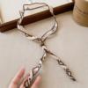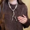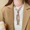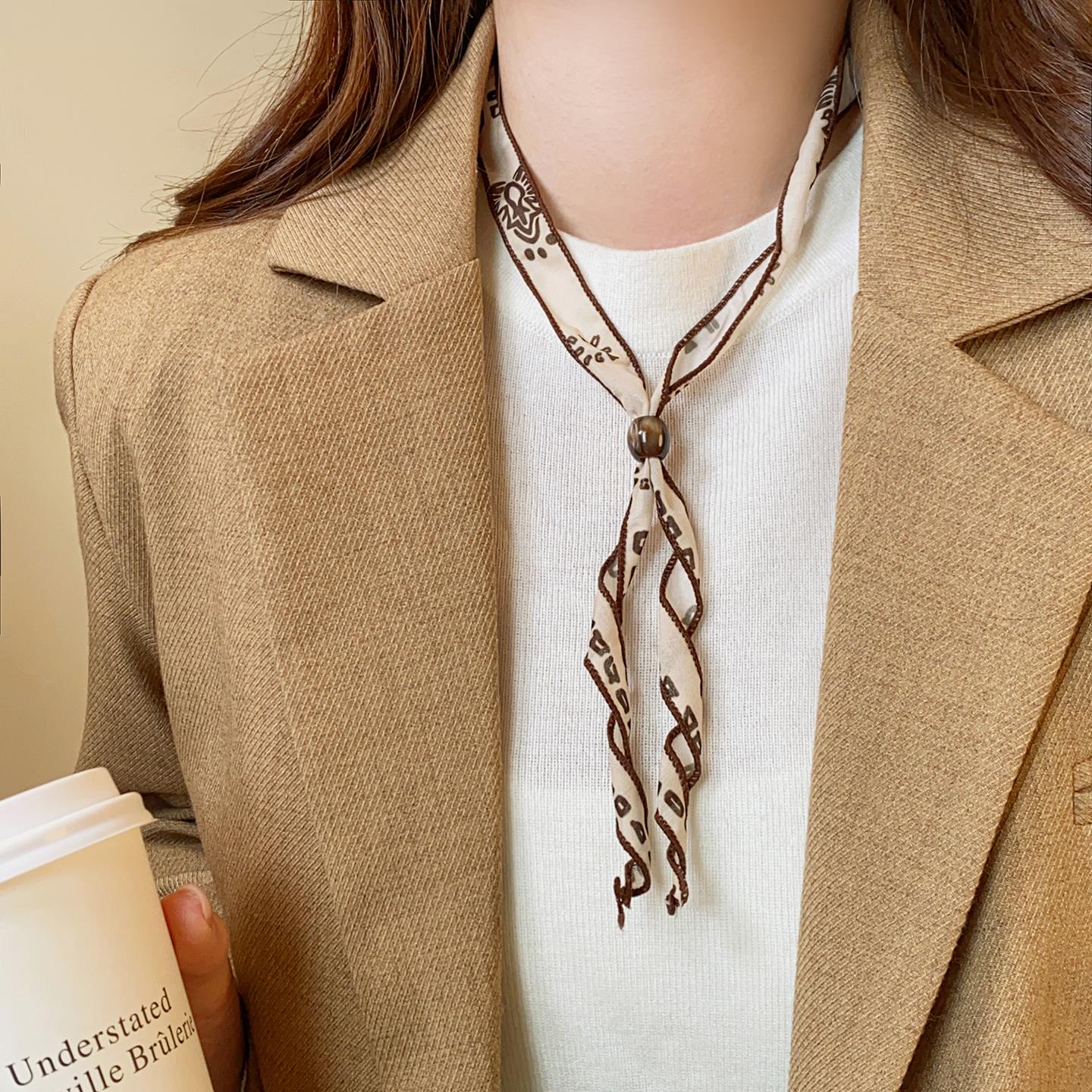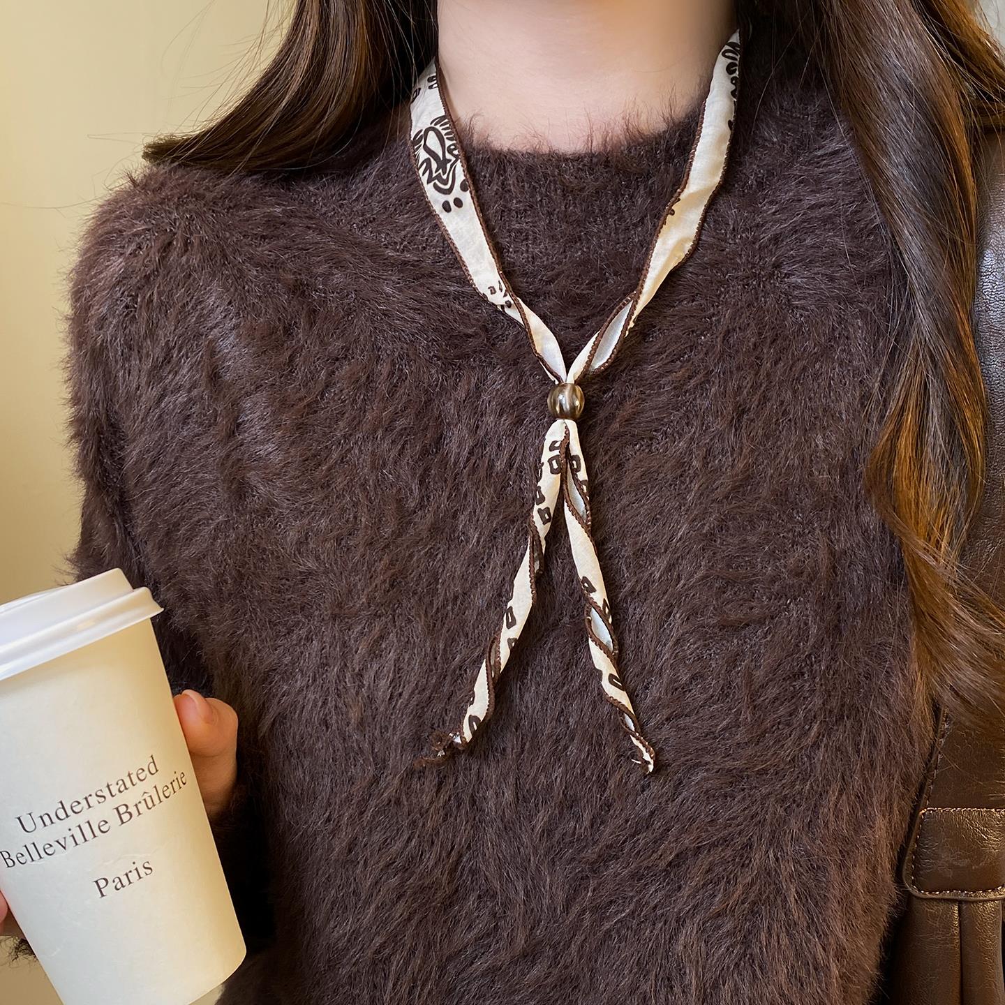 咖色腰果花串珠抽拉式丝巾项链女2025新款秋冬高级感可调节毛衣链