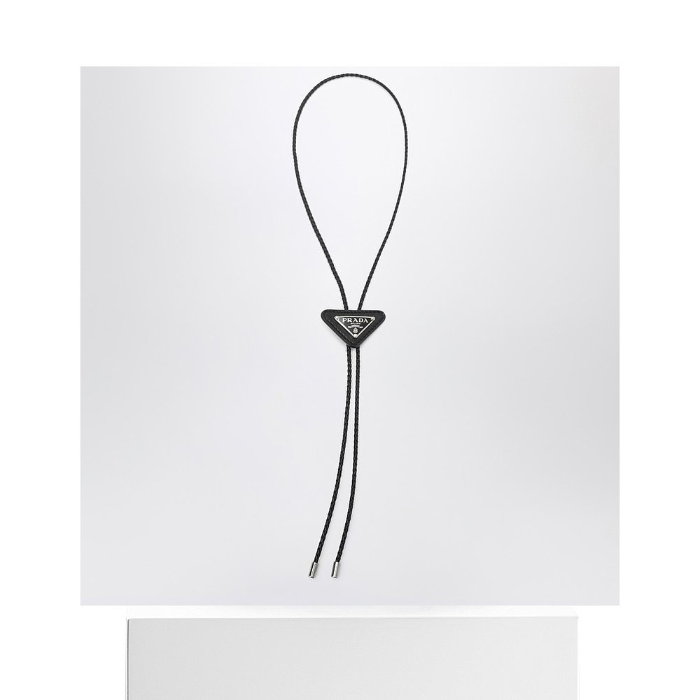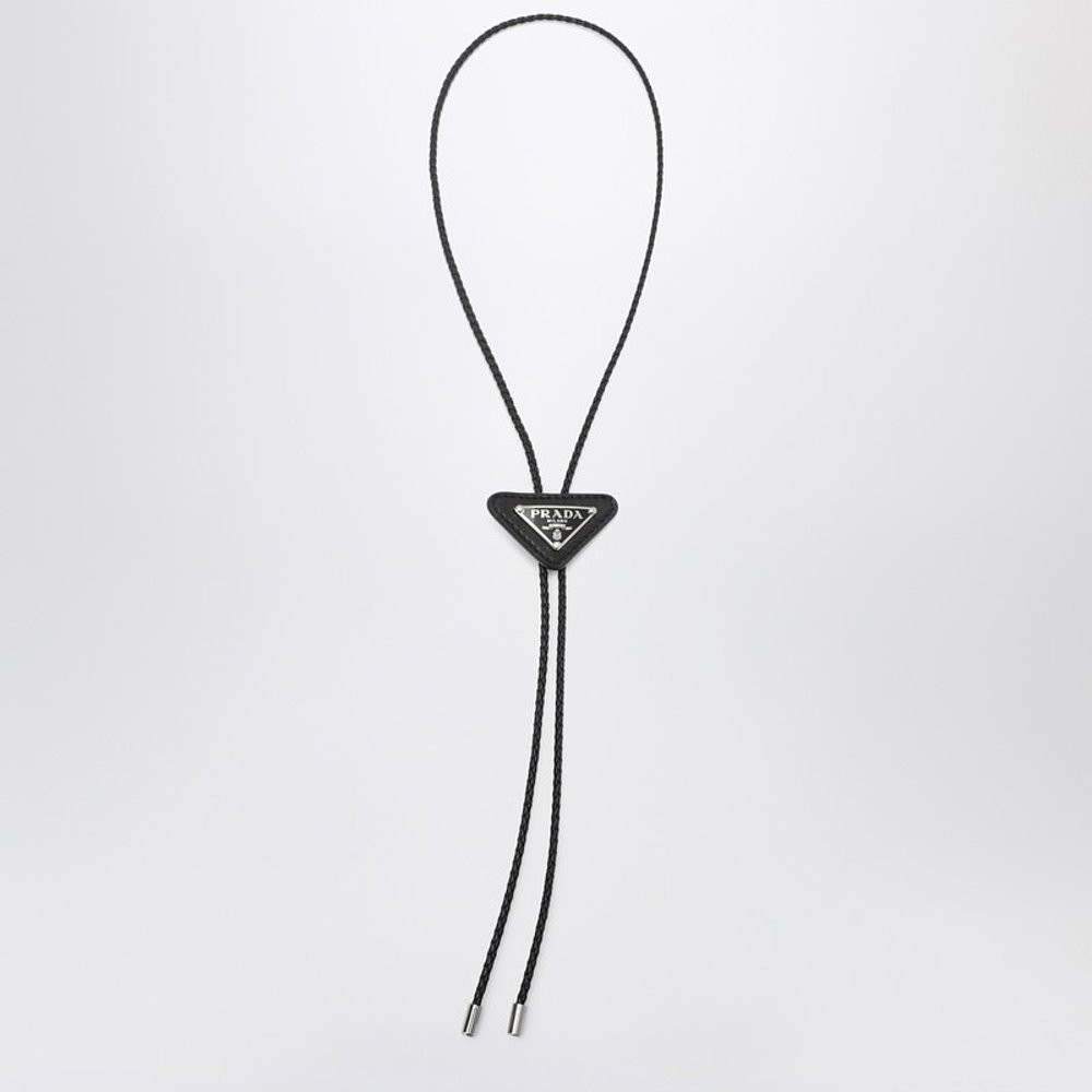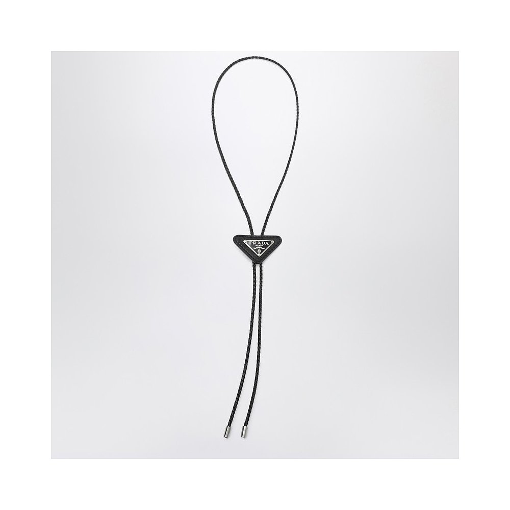 1h可退 潮奢 Prada 普拉达 男士 bolo 黑色小牛皮带Logo领带 2IC1